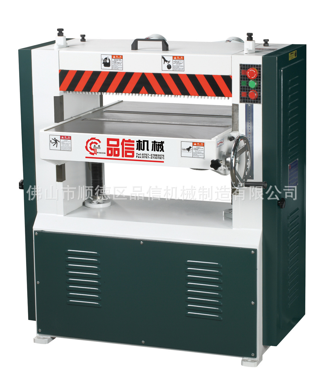 压刨床是一种自动进料、生产效率较高的木工机械,主要用于已经刨过两个基准面的板材或方材,再加工其相对面,使之成为一定厚度和宽度的净料。