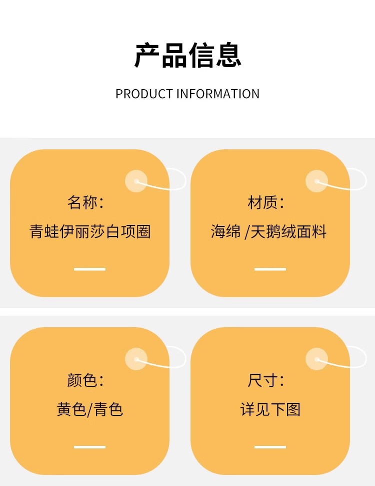 | Talla | Abeja amarilla,Cangrejo amarillo,Rana verde,Donuts |