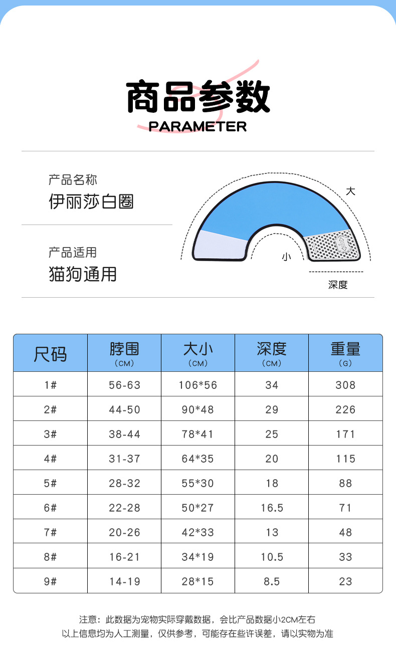 | Especificaciones | Número 9 circunferencia del cuello 14-19cm,Circunferencia del cuello No. 8 16-21cm,Circunferencia del cuello No. 7 20-26cm,Número 6 circunferencia del cuello 20-28cm,Circunferencia del cuello No. 5 28-32cm,Circunferencia del cuello No. 4 31-37cm,Circunferencia del cuello No. 3 38-44cm,Circunferencia del cuello n. ° 2 44-50cm,Número 1 circunferencia del cuello 56-63cm |