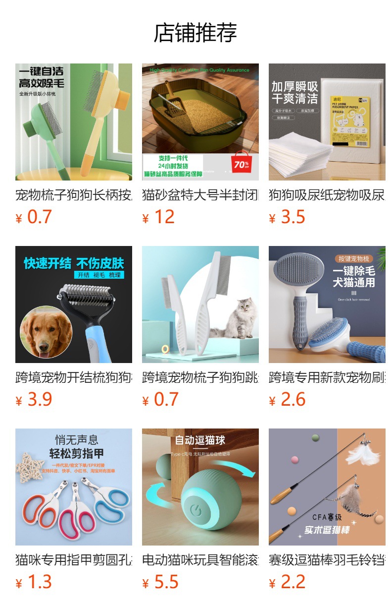 | Suministros para mascotas | Juguetes para mascotas, caja de arena para gatos para mascotas, arena para gatos para mascotas, comida para perros, suministros de limpieza, juguetes, juguetes para gatos, juguetes para perros, peines, cortaúñas para mascotas |