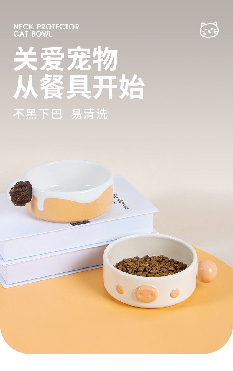 Leyoupai gato tazón de cerámica protección del cuello Pet Bowl gato perro beber doble tazón anti-golpe perro tazón gato cuenca PET vajilla
