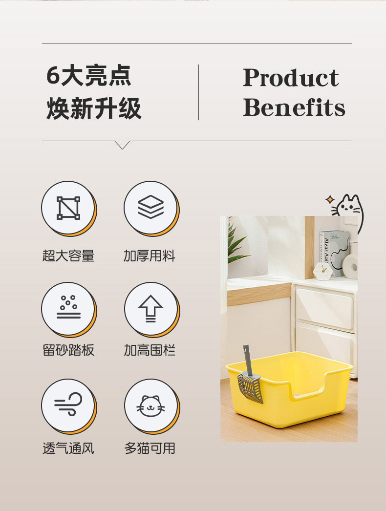 | Colores | Arenero de baño de gran tamaño (amarillo),Arenero para gatos con bañera de gran tamaño (color café con leche),Lavabo de baño de gran tamaño (gris),Tina grande caja de arena (amarilla),Bañera grande caja de arena para gatos (color café con leche),Tina grande caja de arena (gris) |