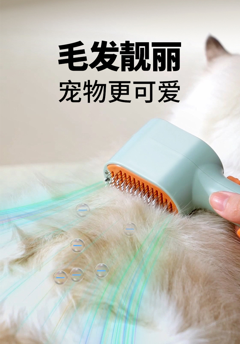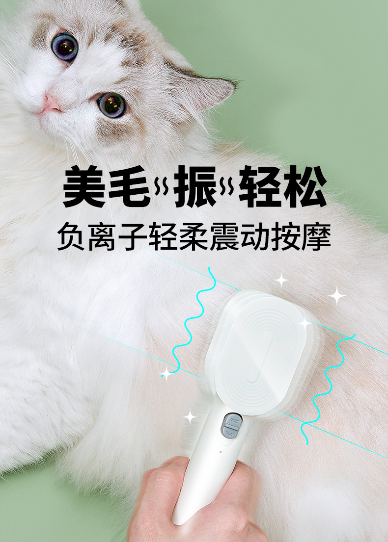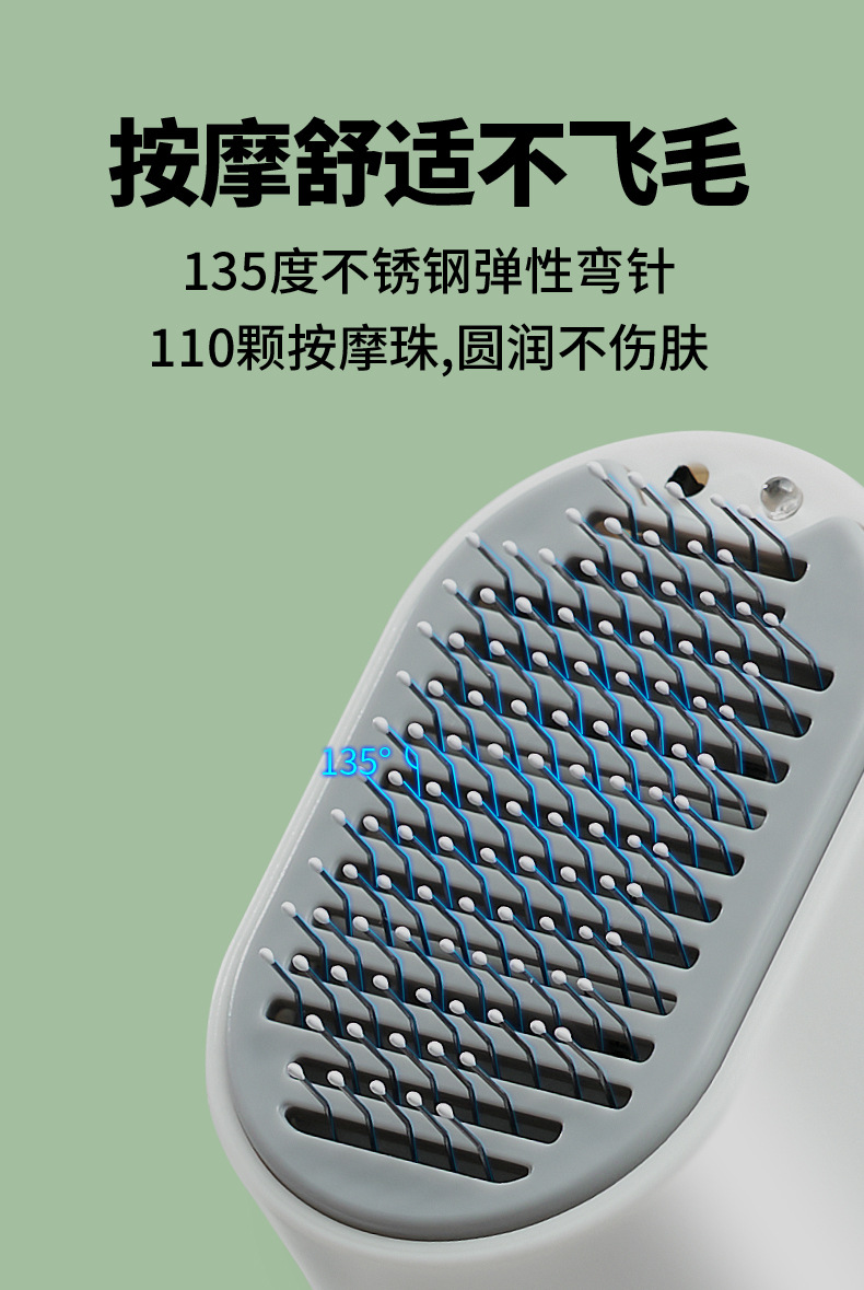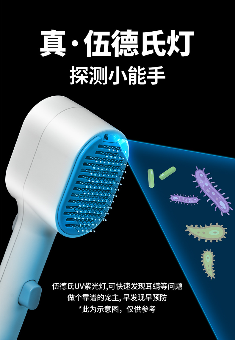 Peine de masaje de iones negativos para mascotas para eliminar la vibración electrostática SPA cuidado del cabello UV detección de ácaros de luz púrpura aguja curva no daña la piel
