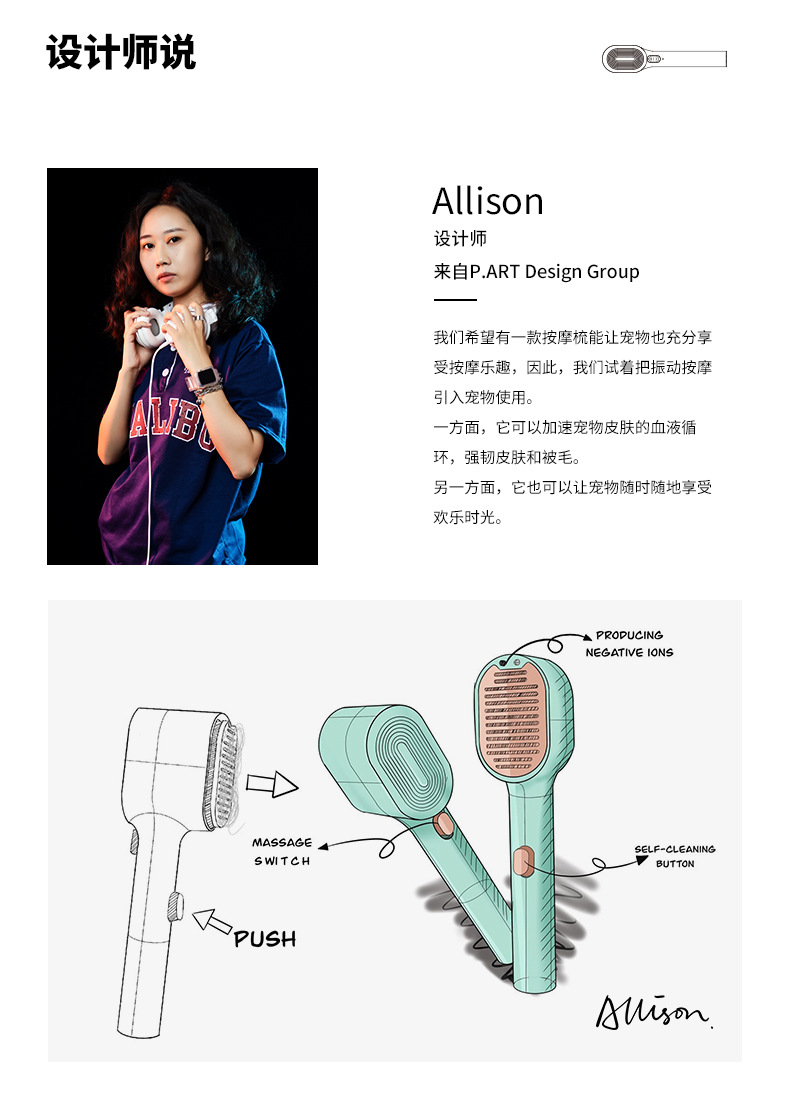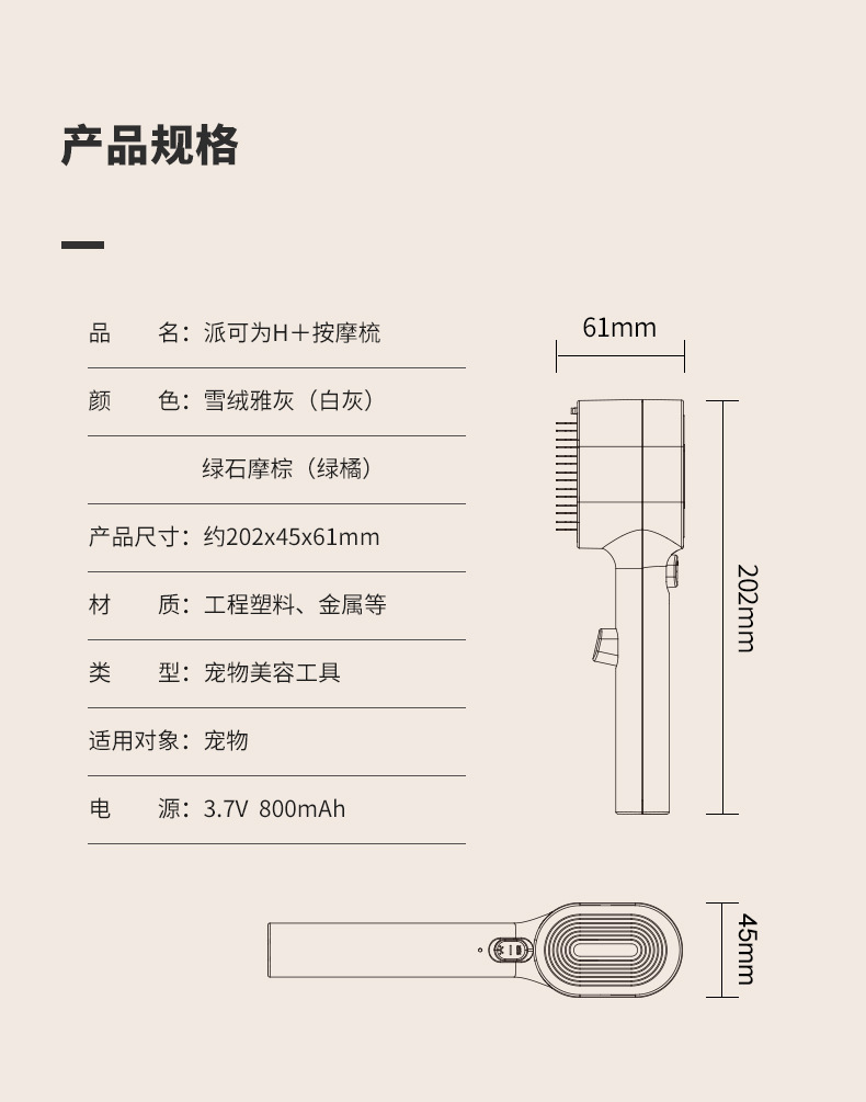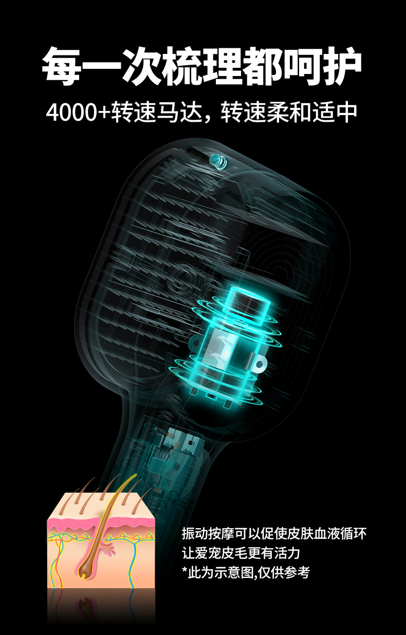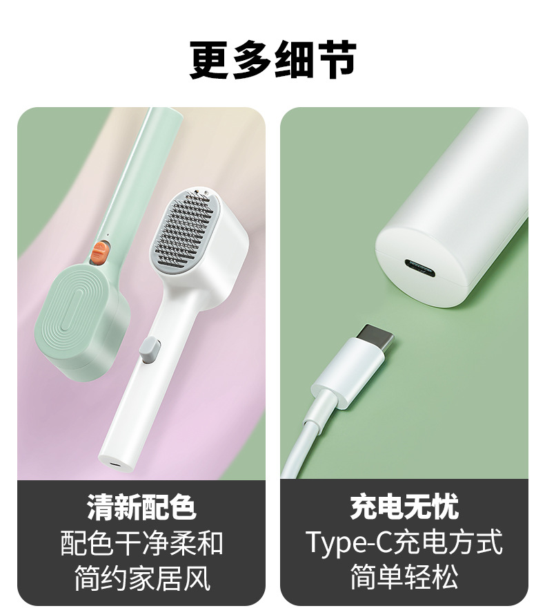 Peine de masaje de iones negativos para mascotas para eliminar la vibración electrostática SPA cuidado del cabello UV detección de ácaros de luz púrpura aguja curva no daña la piel