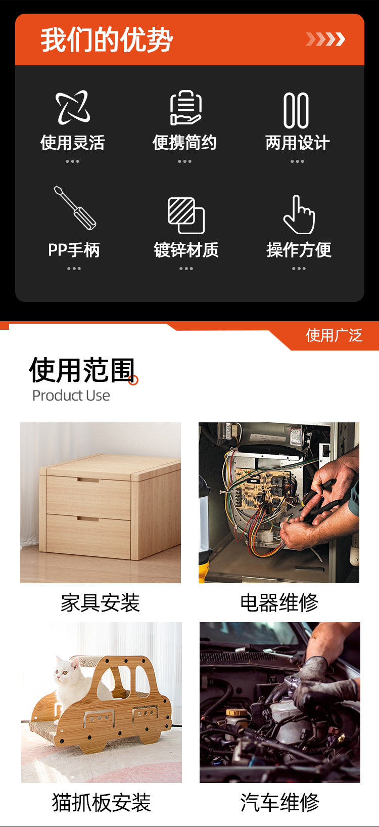 Destornillador manual cruzado de un solo uso al por mayor de fábrica, placa de agarre de gato, destornillador de doble cabezal desmontable