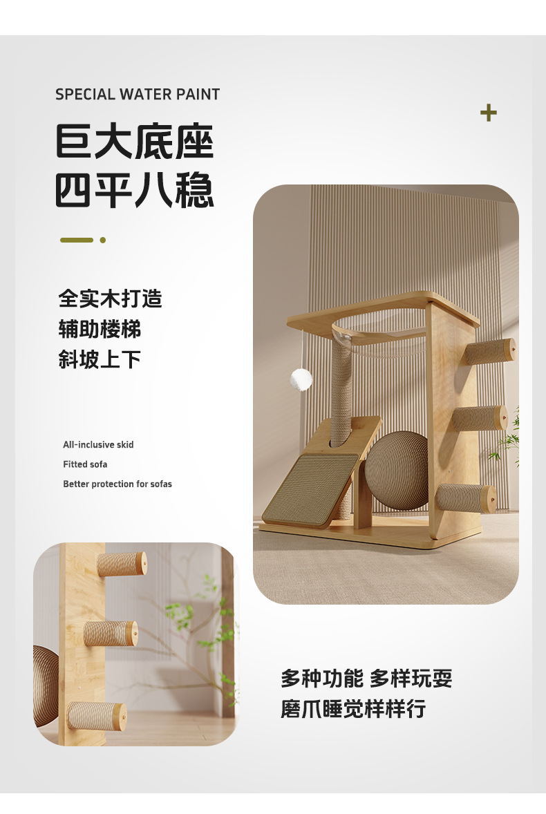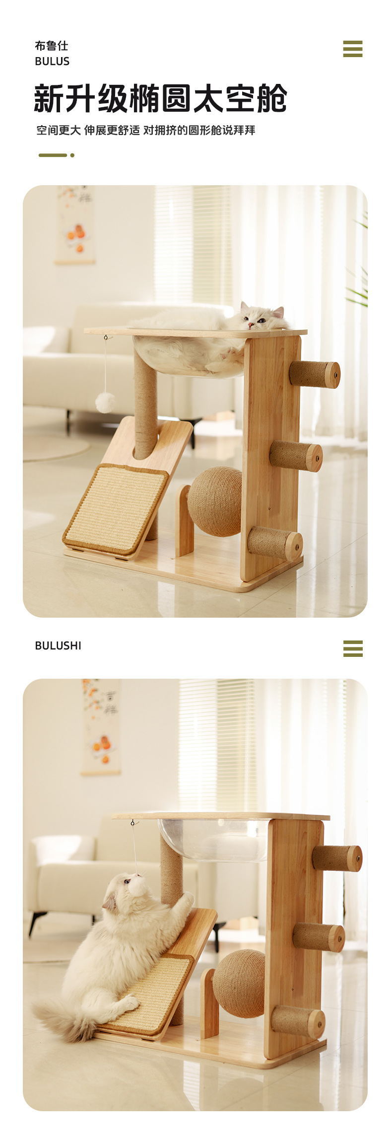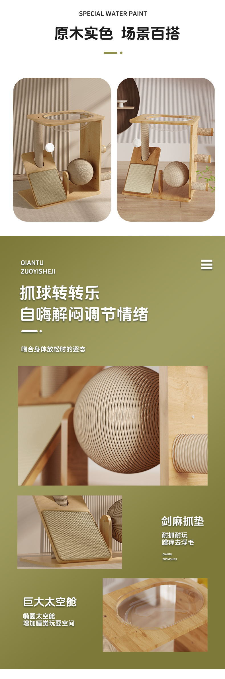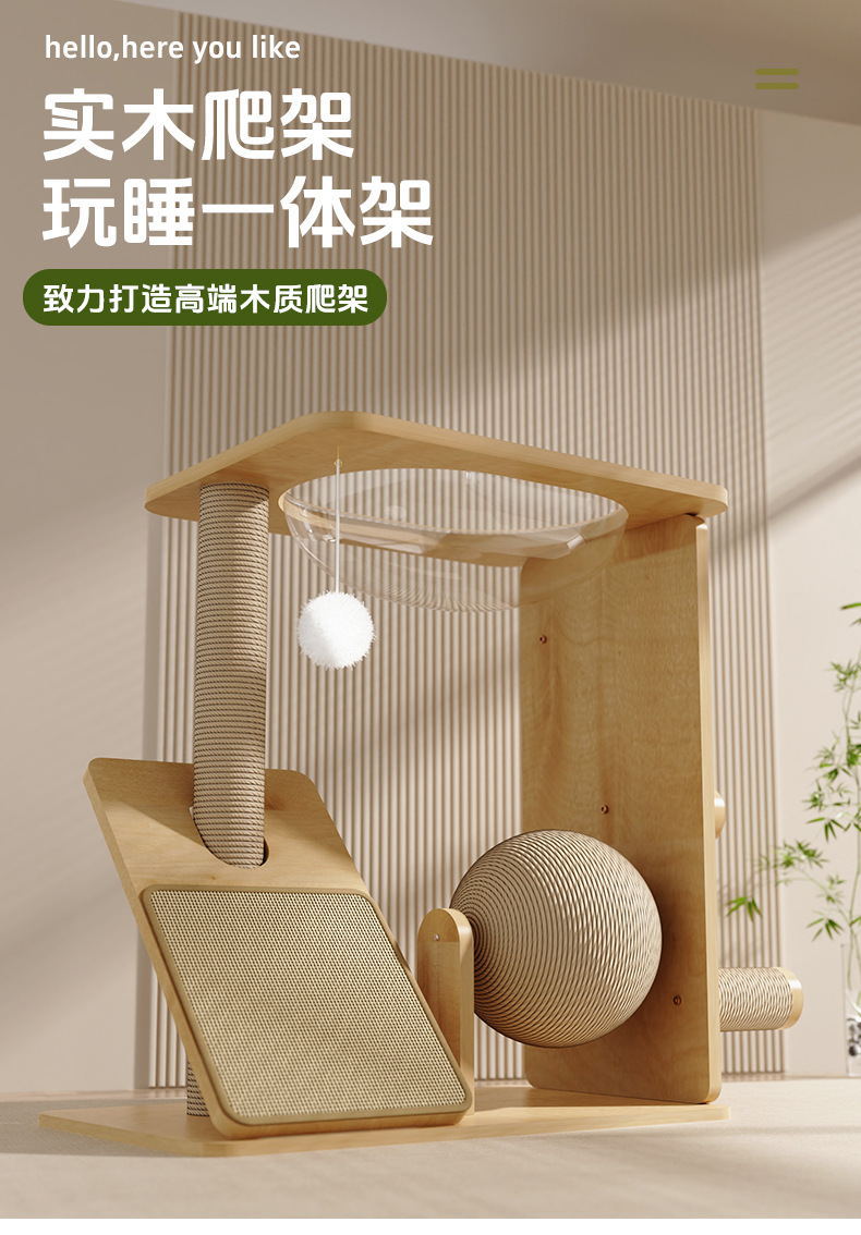 Marco de escalada para gatos de madera maciza personalizado, tabla de agarre, bola de sisal, plataforma de salto integrada, cápsula espacial, marco de escalada para gatos, juguetes para gatos que no ocupan un lugar