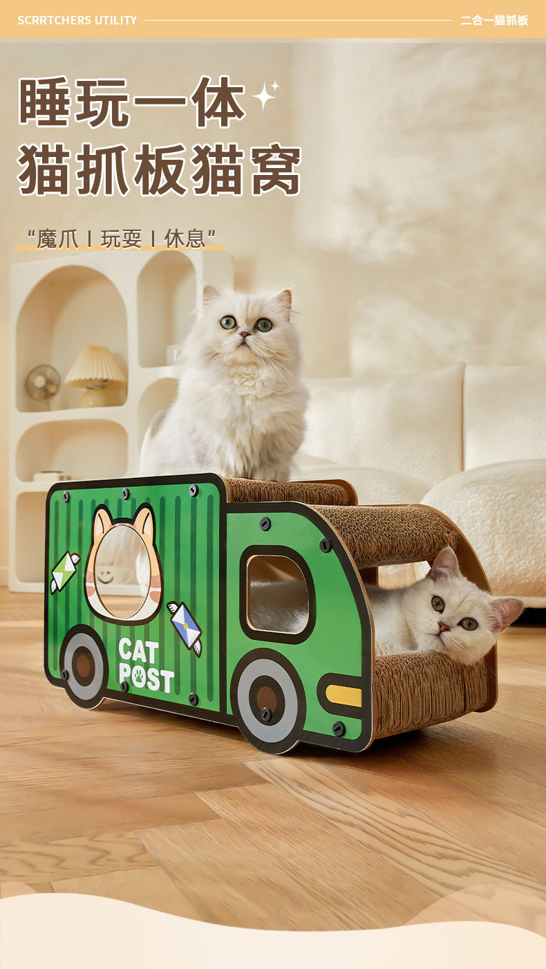 Casita para gatos, tablero de agarre para gatos, camión, papel corrugado, resistente al desgaste, de alto valor, carro grande de doble capa, tablero de patas de gato, juguetes para mascotas