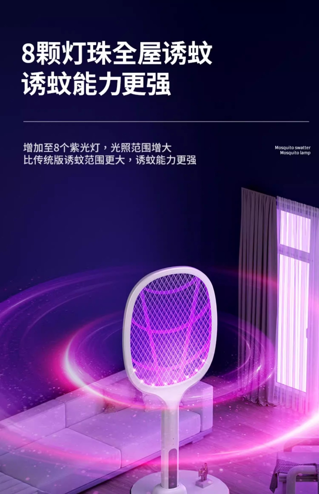 | Colores | Modelo mejorado [Base de trampa de mosquitos de luz púrpura de dos lámparas],Modelo mejorado [La base de mosquito violeta de cuatro luces se puede utilizar como asesino de mosquitos],Modelo mejorado [Base ampliada para atraer mosquitos de luz púrpura de ocho luces] (carga rápida trpe-c),Modelo insignia de lujo [base ampliada para atraer mosquitos con luz púrpura de ocho luces] (carga USB extremadamente rápida),Modelo insignia supremo [18 luces, luz púrpura, mosquito, pantalla de potencia, superficie de raqueta, base ampliada] (batería de larga duración),Estilo simple [red eléctrica de tres capas de carga integrada] color aleatorio |