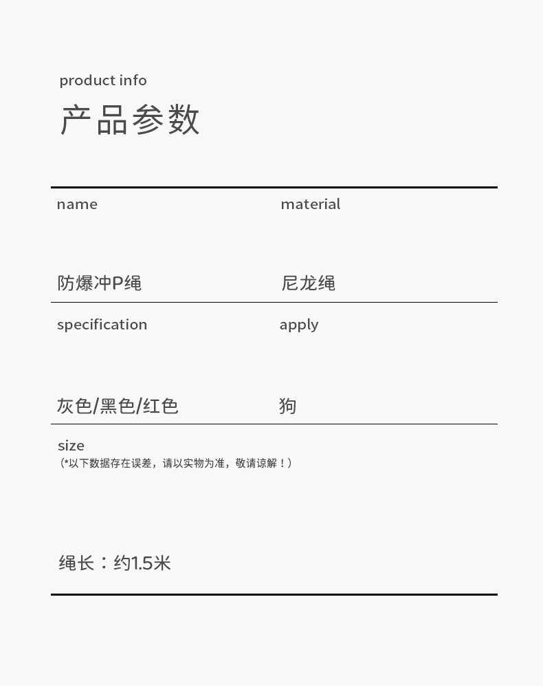 | Especificación (longitud * anchura) | Longitud del código S 1,5 m,M código de longitud 1,5 M,L longitud del código 1,5 m |
