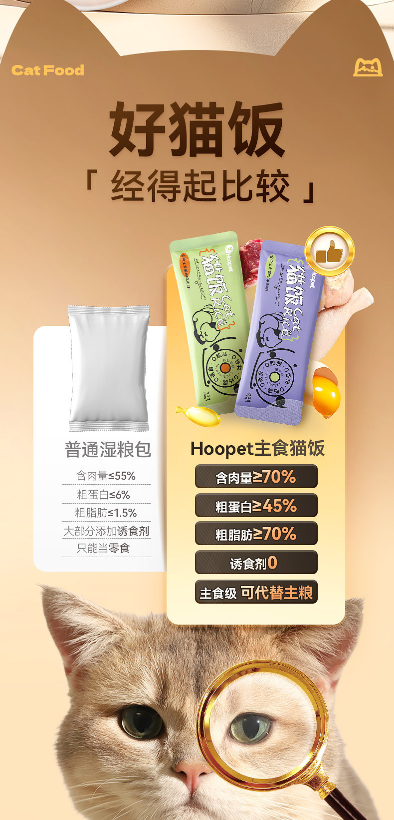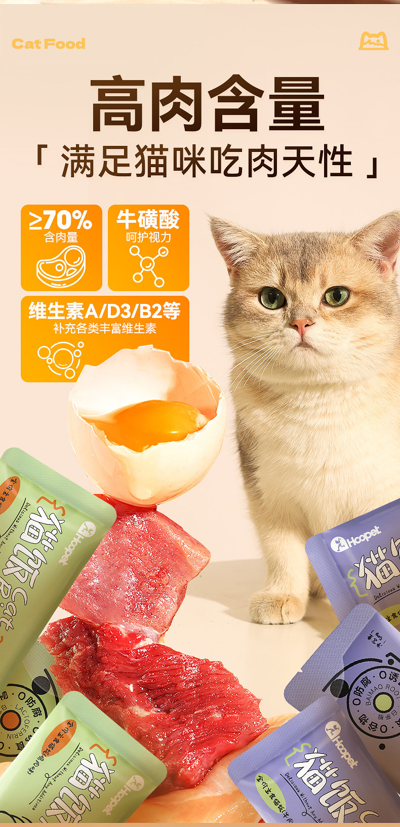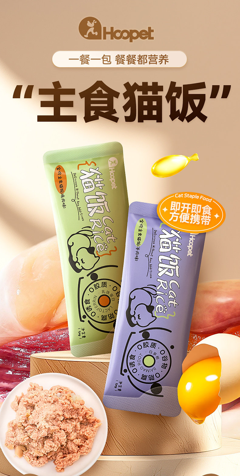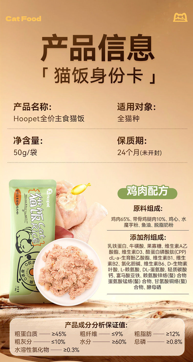【品名】:hoopet全价主食猫饭鸡肉味50g/牛肉味50g/混合味50g*10