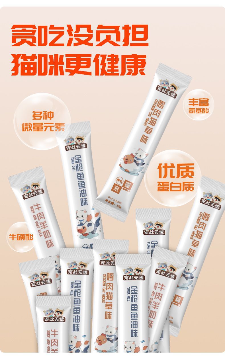 | Especificaciones | [Sabor mixto] (Pinduoduo está prohibido),[Sabor a aceite de atún] (Pinduoduo está prohibido),[Sabor a leche de res y cabra] (Pinduoduo está prohibido),[Sabor a pollo y hierba para gatos] (Pinduoduo está prohibido) |