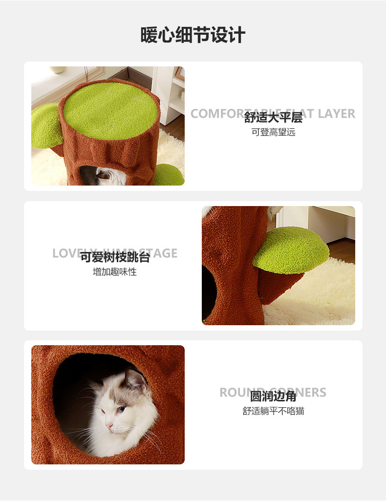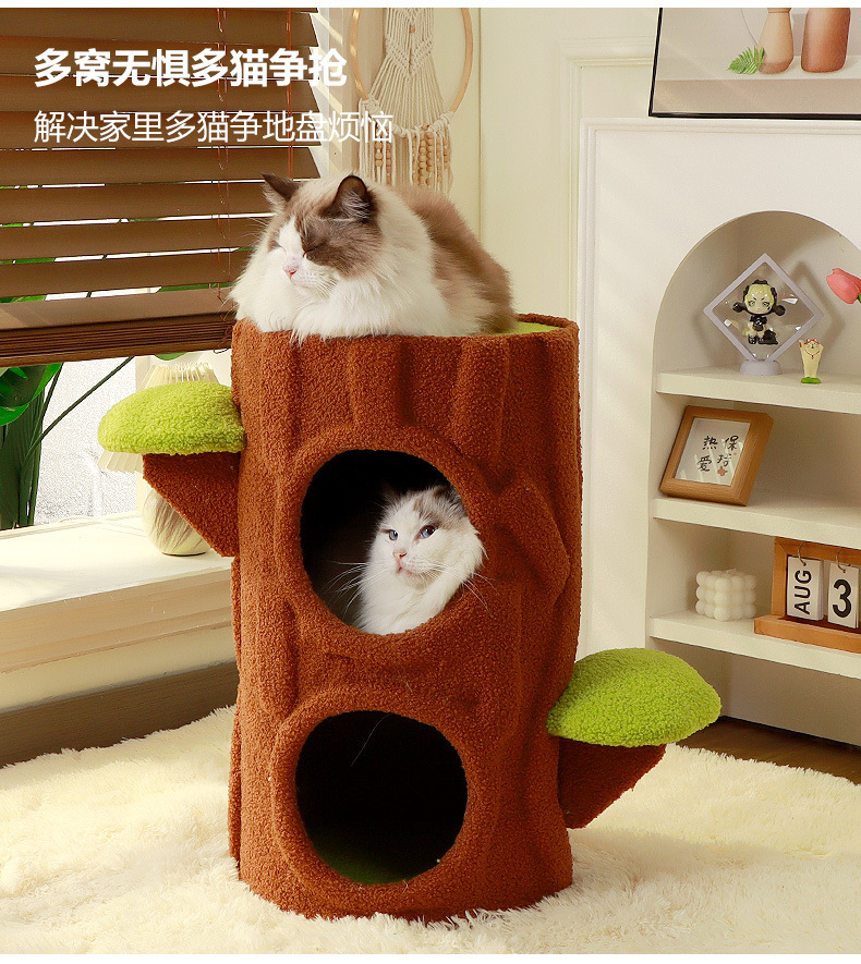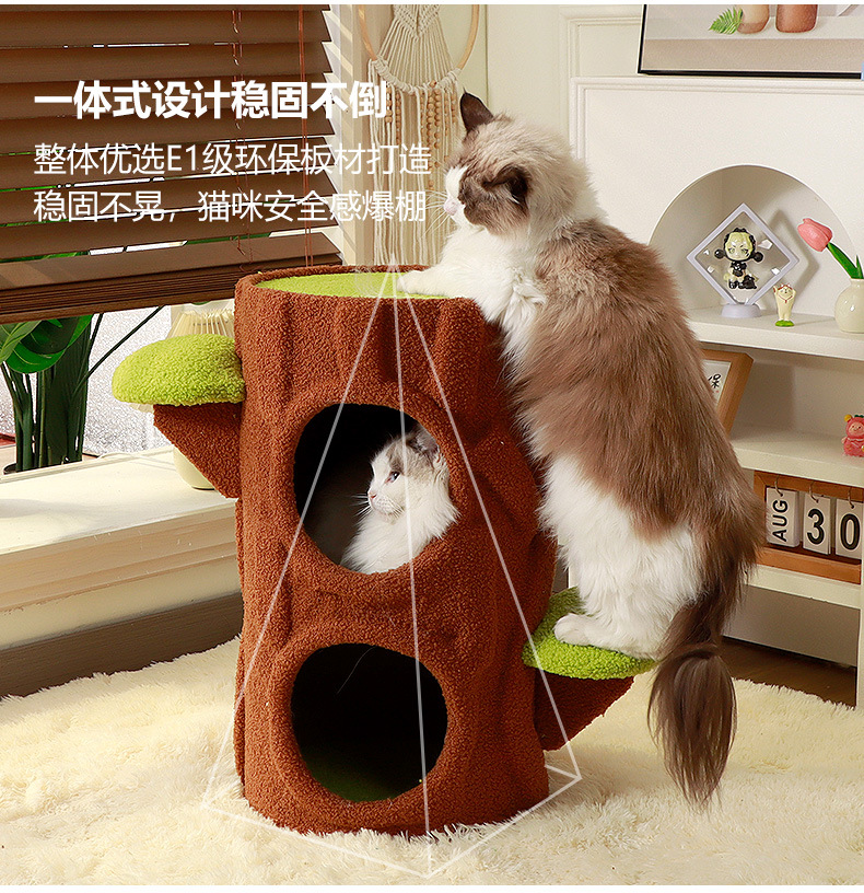 Marco de escalada para gatos de franela personalizado al por mayor, estructura de madera multicapa, raspador de juguetes para gatos con casa para gatos, cuerda de sisal, apartamento de columna de agarre