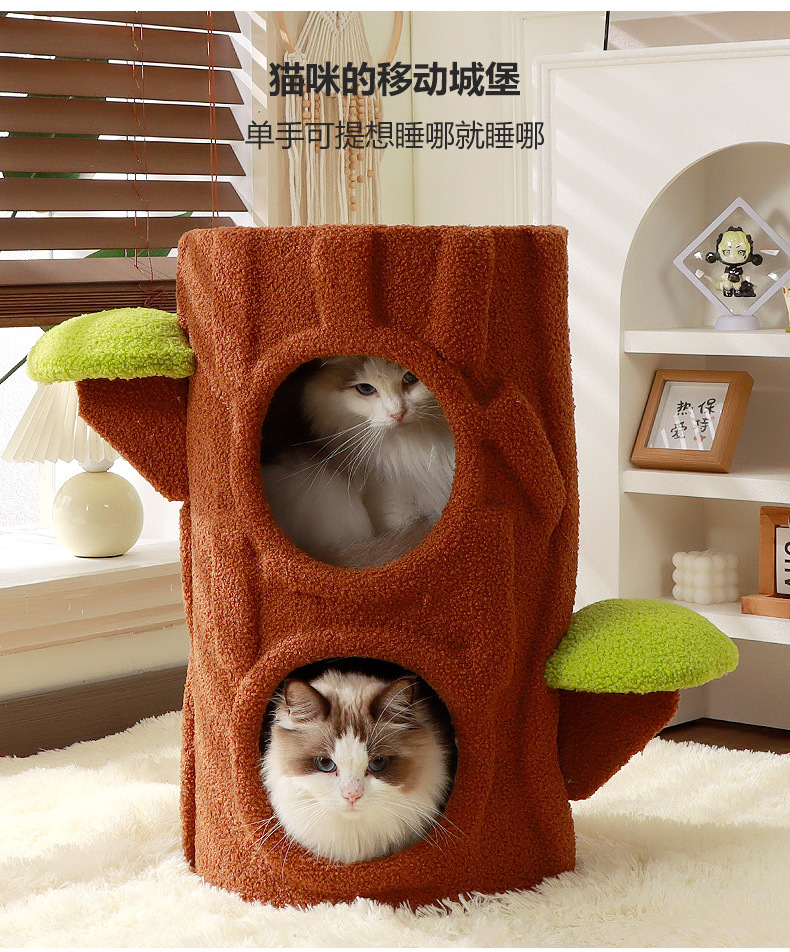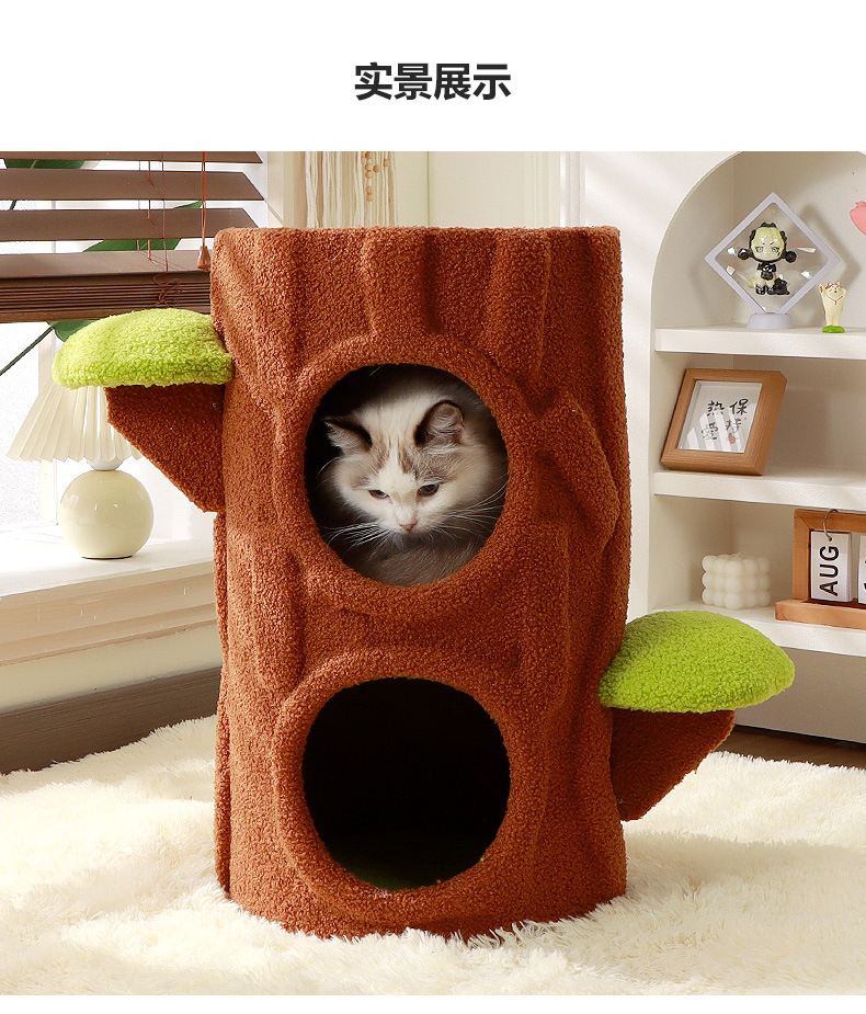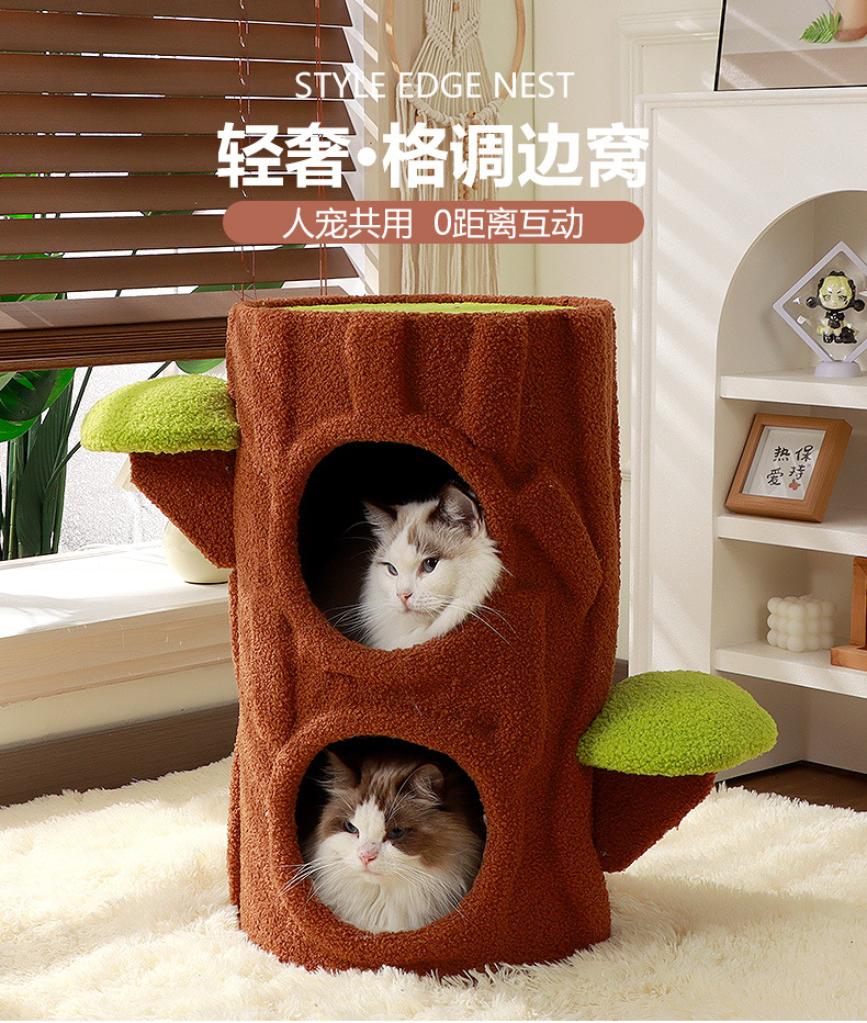Nido de gato de paja de madera maciza de lujo nido de mascotas casa de gato tablero del rasguño fuente de fábrica estable gato villa gato escalada marco
