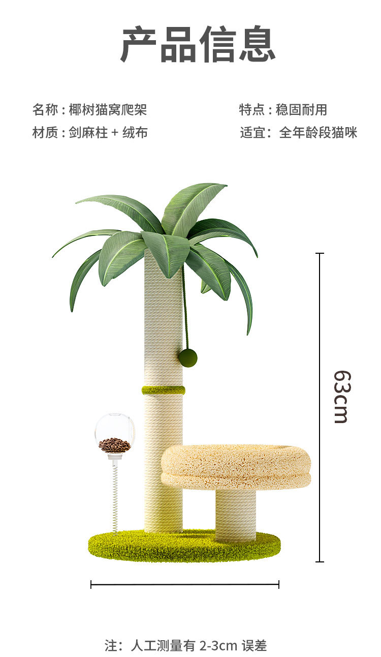 ColoresMarco de escalada de pelotas de cocotero,Tocadiscos de coco y gato [MDF (las bolas son todas bolas de madera)],Tocadiscos de coco y gato [madera maciza (incluida la bola de menta)],Columna única de árbol de coco