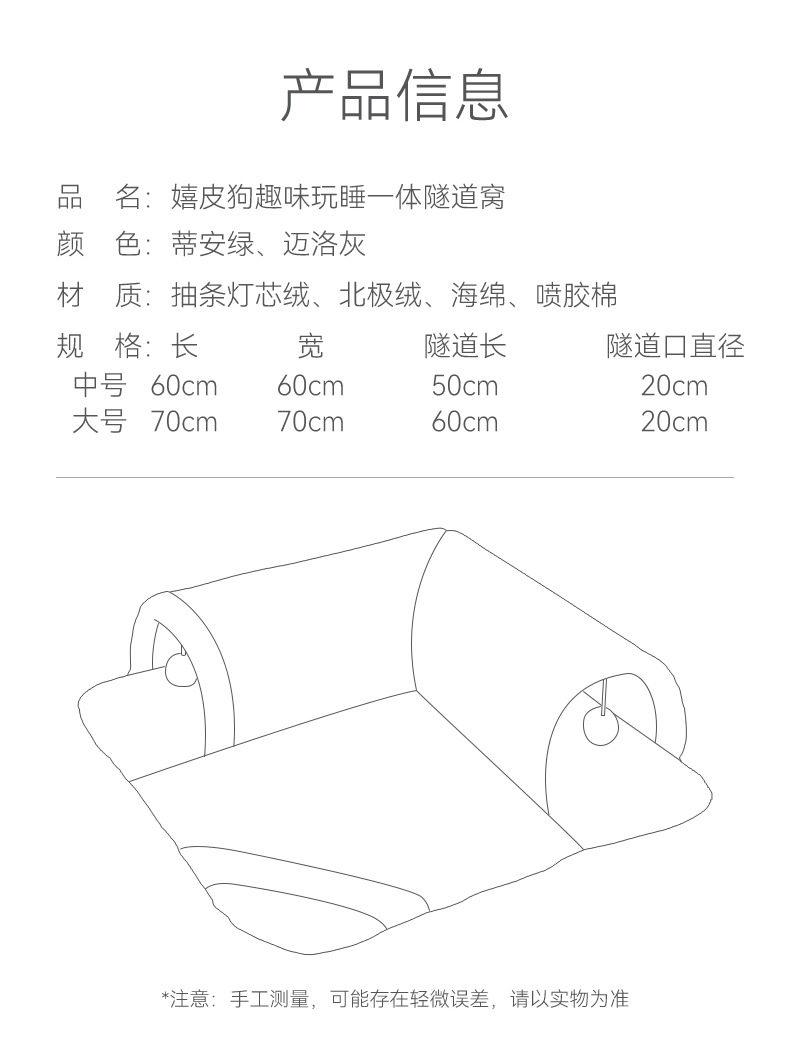 XL:垫子尺寸80*80(隧道长70*70,隧道门宽28)