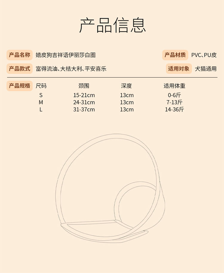 | Colores | S (peso recomendado 0-6 kg),M (peso recomendado de 7 a 13 kg),L (peso recomendado 14-36 kg) |