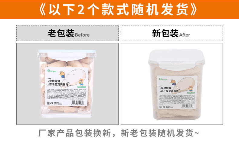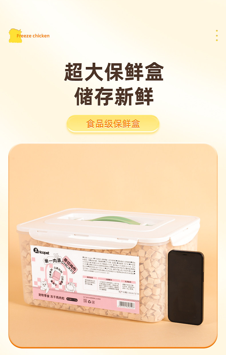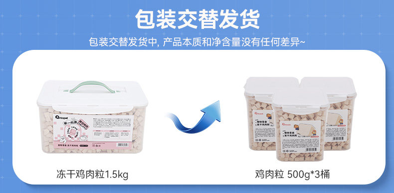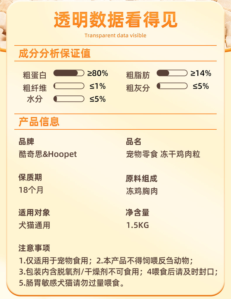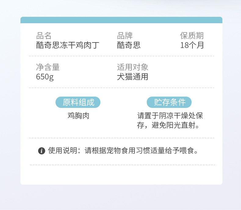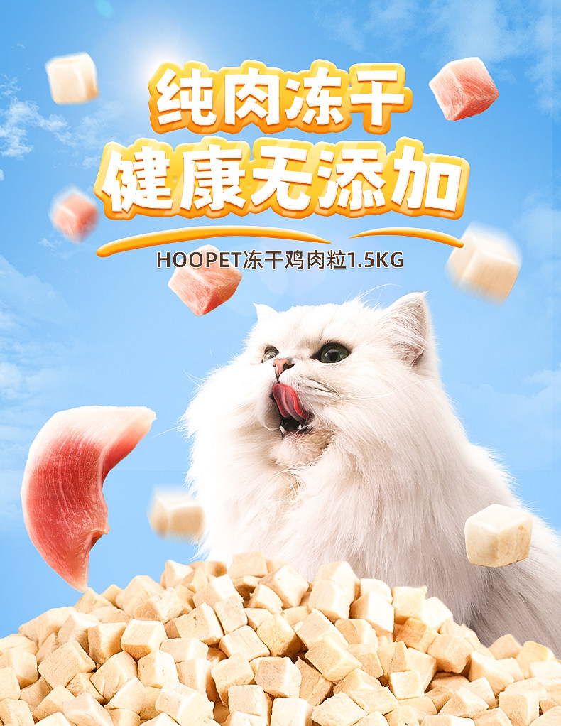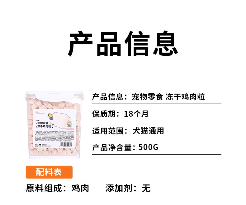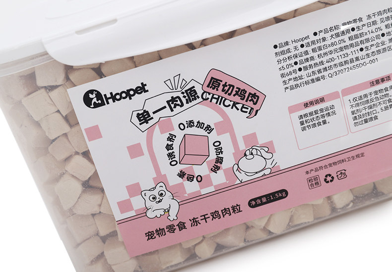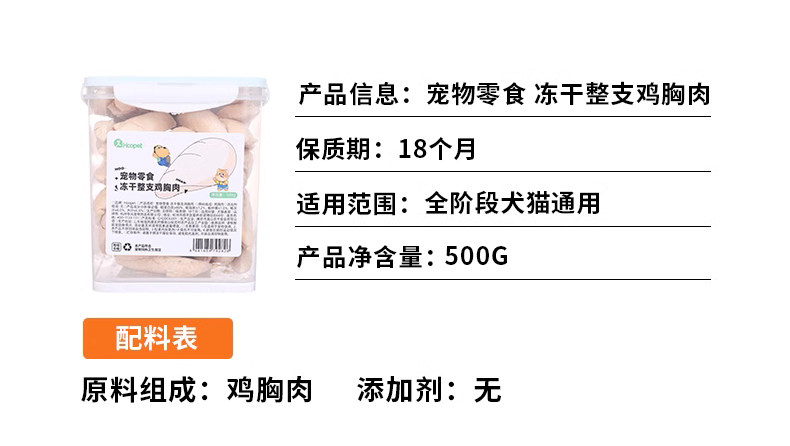 【品名】:Hoopet宠物零食 冻干鸡肉粒1.5kg/冻干(整支鸡胸肉/冻干鸡肉粒)500g/冻干鸡小胸50g/冻干整支鸭小胸50g/酷奇思冻干鸡肉丁宠物零食650g/冻干(鸡小胸100g/鸡肉丁100g)