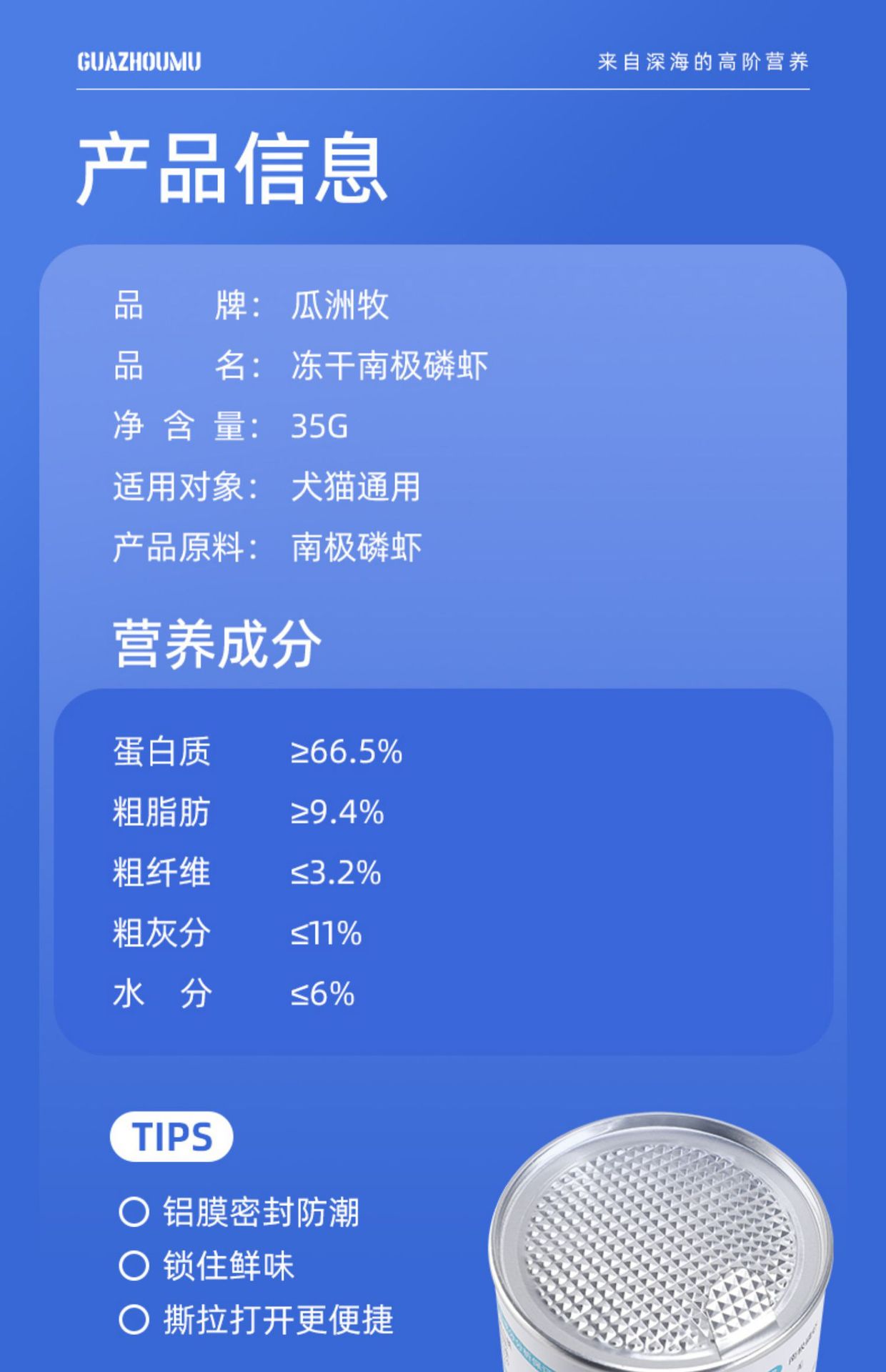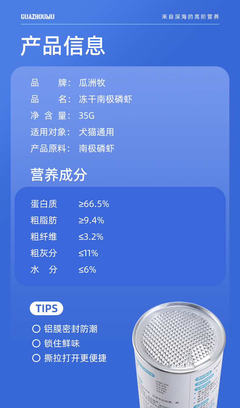 | Sabor | Liofilización de krill antártico |