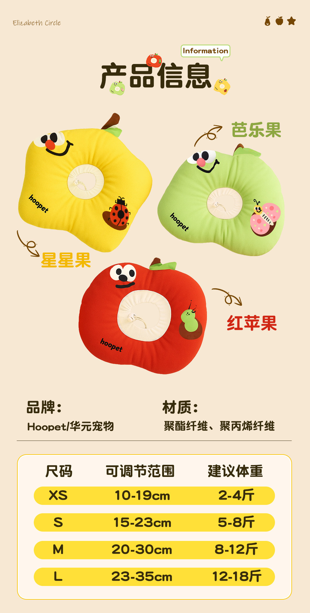 【品名】:HOOPET宠物伊丽莎白圈-(芭乐果/星星果)(防水款)XS/S/M/L