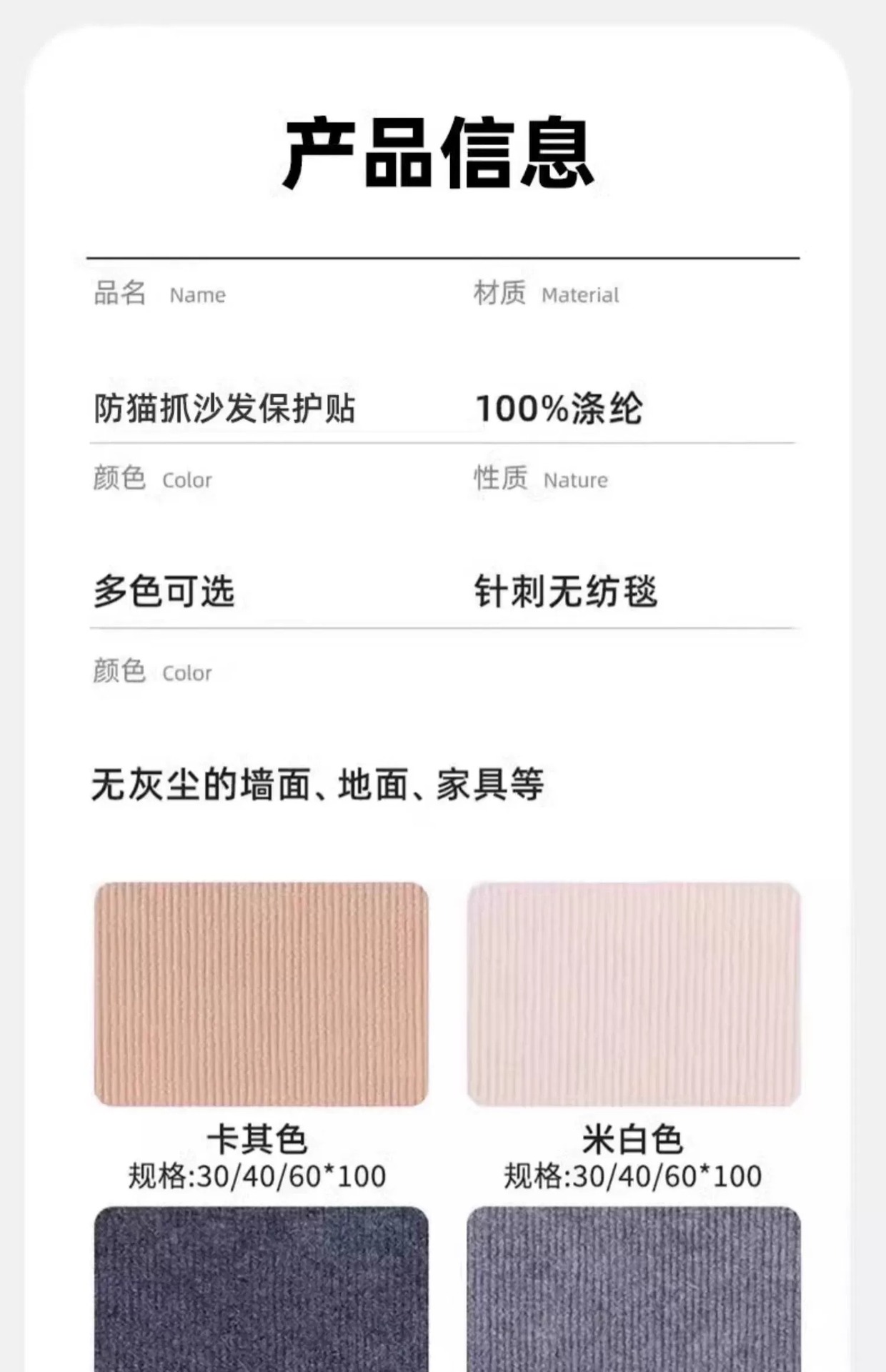 | Colores | Blanco beige 30*200cm,Blanco beige 40*200cm,Blanco beige 60*200cm,Gris oscuro 30*200cm,Gris oscuro 40*200cm,Gris oscuro 60*200cm,Gris claro 30*200cm,Gris claro 40*200cm,Gris claro 60*200cm,Caqui 30*200cm,Caqui 40*200cm,Caqui 60*200cm,Blanco beige 30*300cm,Blanco beige 40*300cm,Blanco beige 60*300cm,Gris claro 30*300cm,Gris claro 40*300cm,Gris claro 60*300cm,Gris oscuro 30*300cm,Gris oscuro 40*300cm,Gris oscuro 60*300cm,Caqui 30*300cm,Caqui 40*300cm,Caqui 60*300cm,Blanco beige 30*100cm,Blanco beige 40*100cm,Blanco beige 60*100cm,Gris oscuro 30*100cm,Gris oscuro 40*100cm,Gris oscuro 60*100cm,Gris claro 30*100cm,Gris claro 40*100cm,Gris claro 60*100cm,Caqui 30*100cm,Caqui 40*100cm,Caqui 60*100cm |