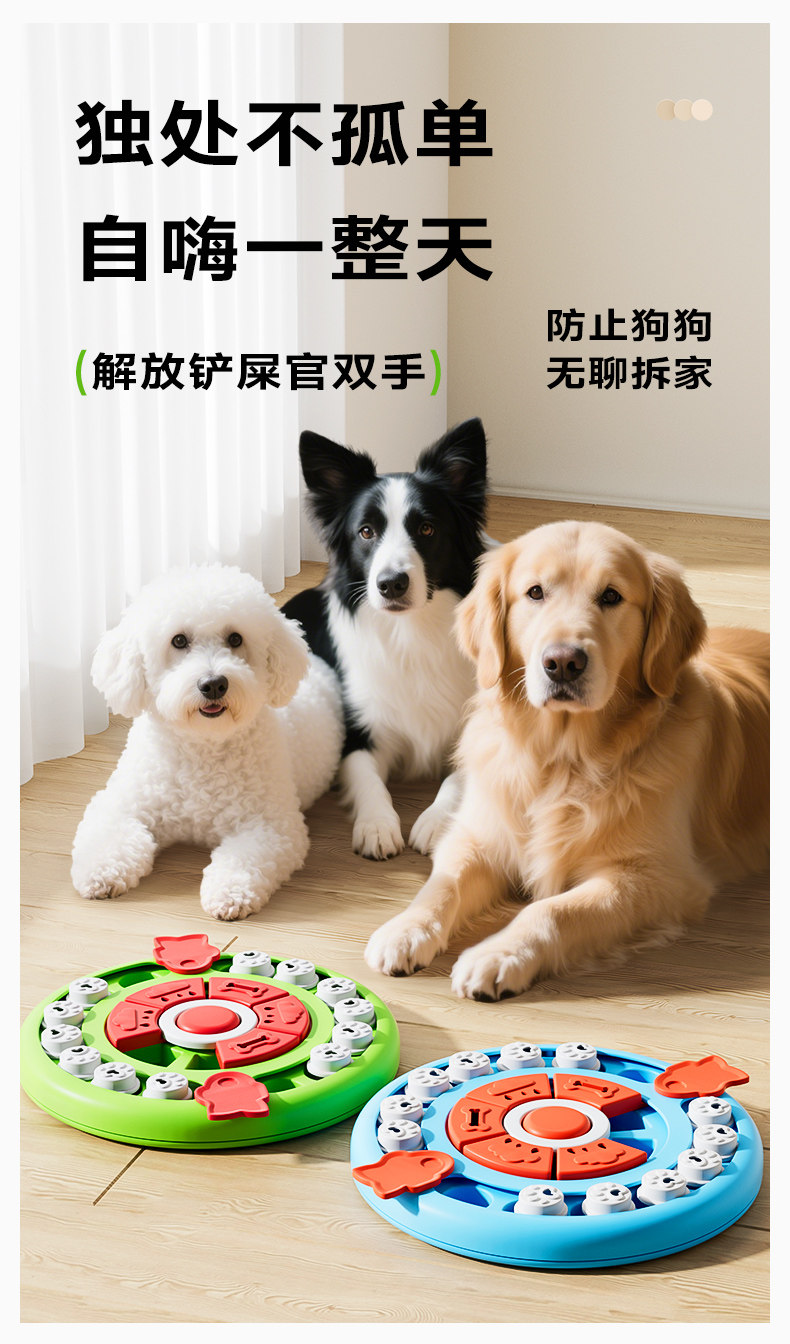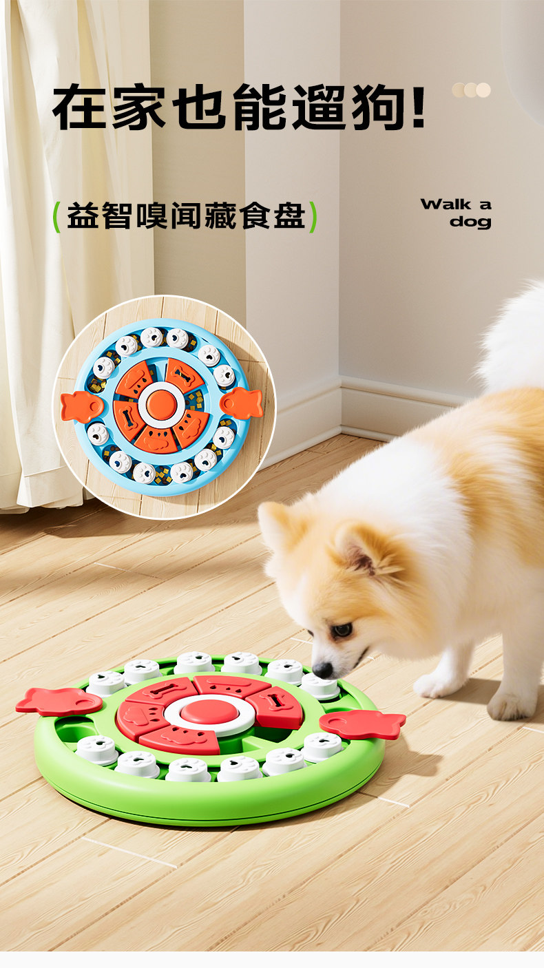 【品名】:HOOPET圆盘益智玩具/长多格益智盘/圆形披萨益智盘(绿/蓝)