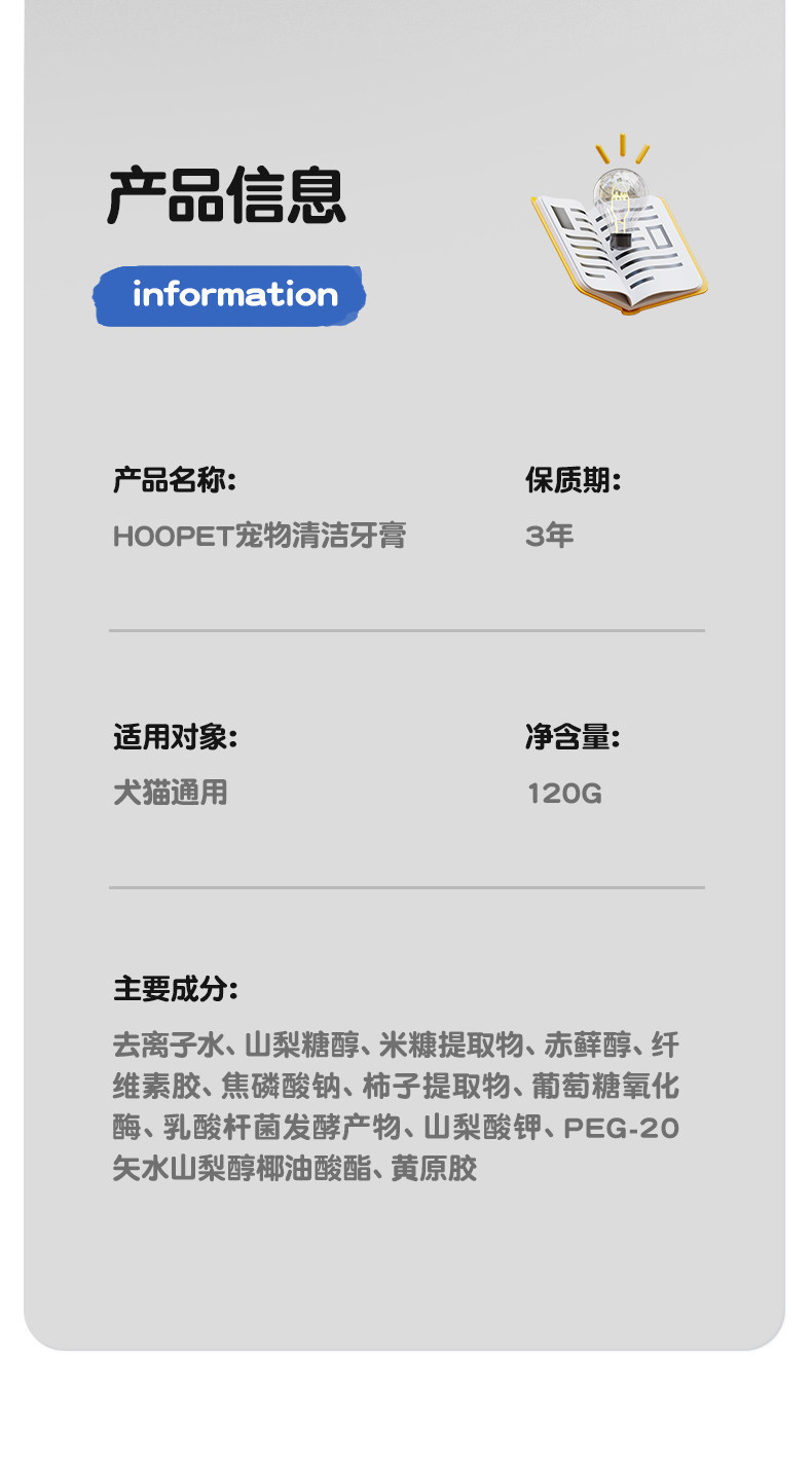 【品名】:HOOPET 宠物清洁牙膏