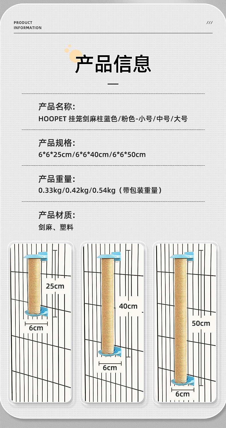 【品名】:HOOPET 挂笼剑麻柱蓝色/粉色-小号/中号/大号