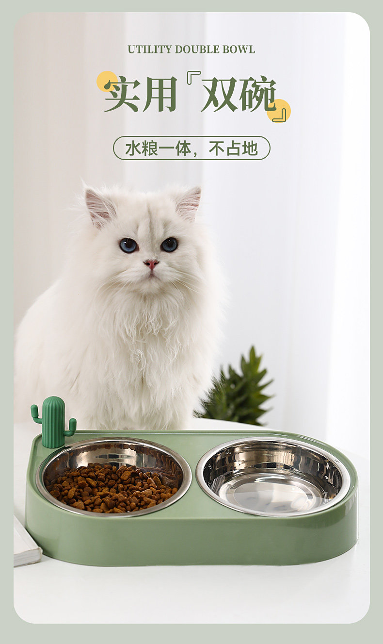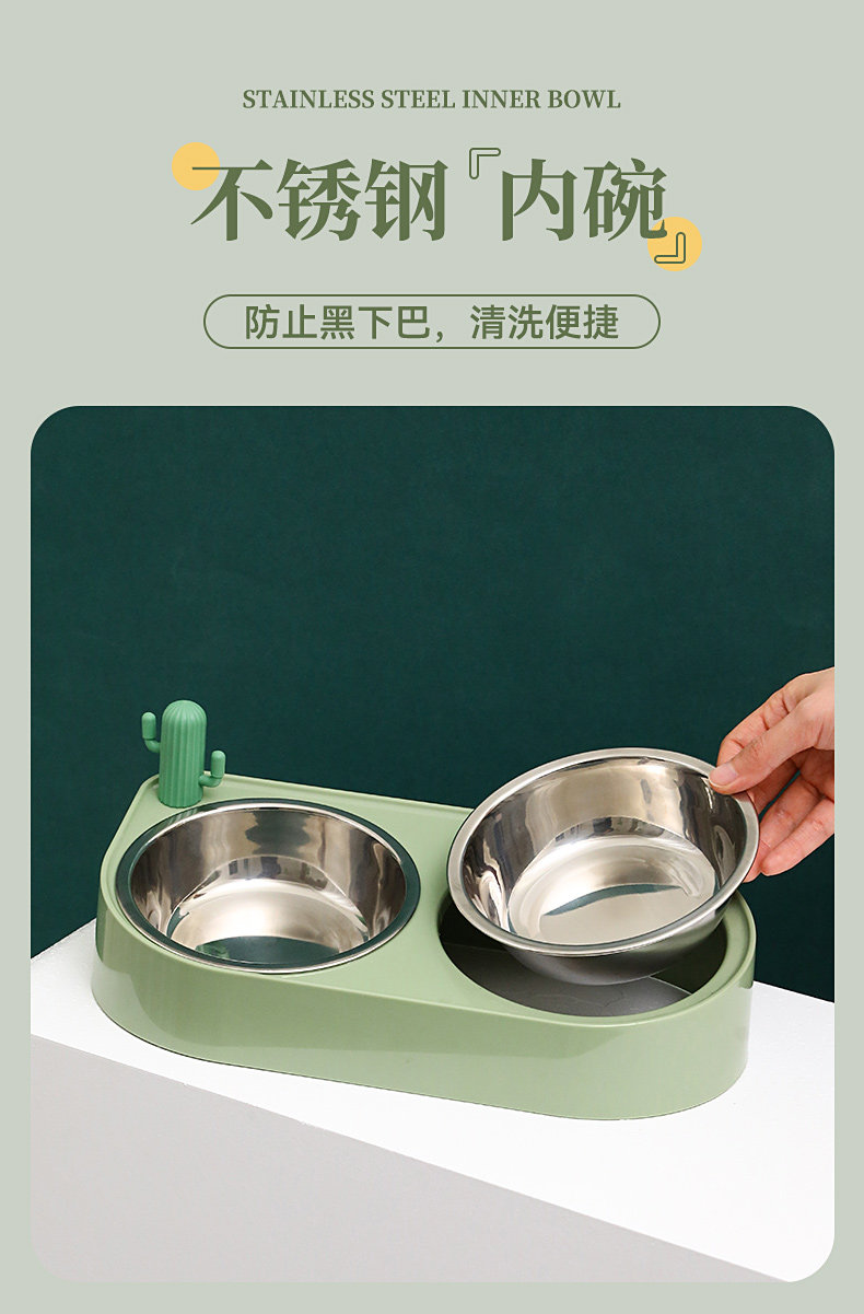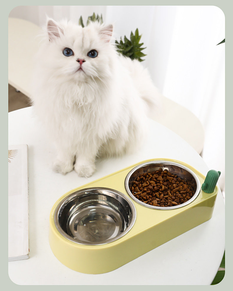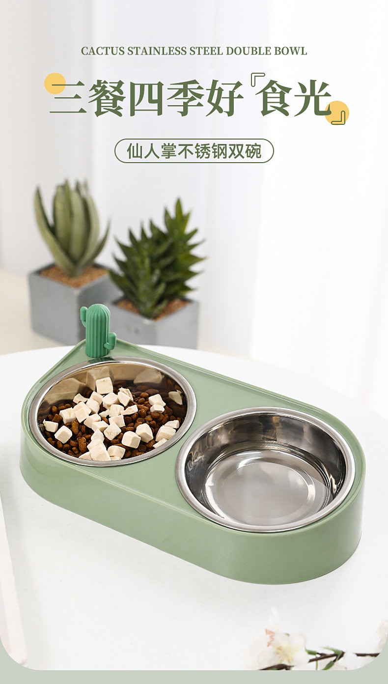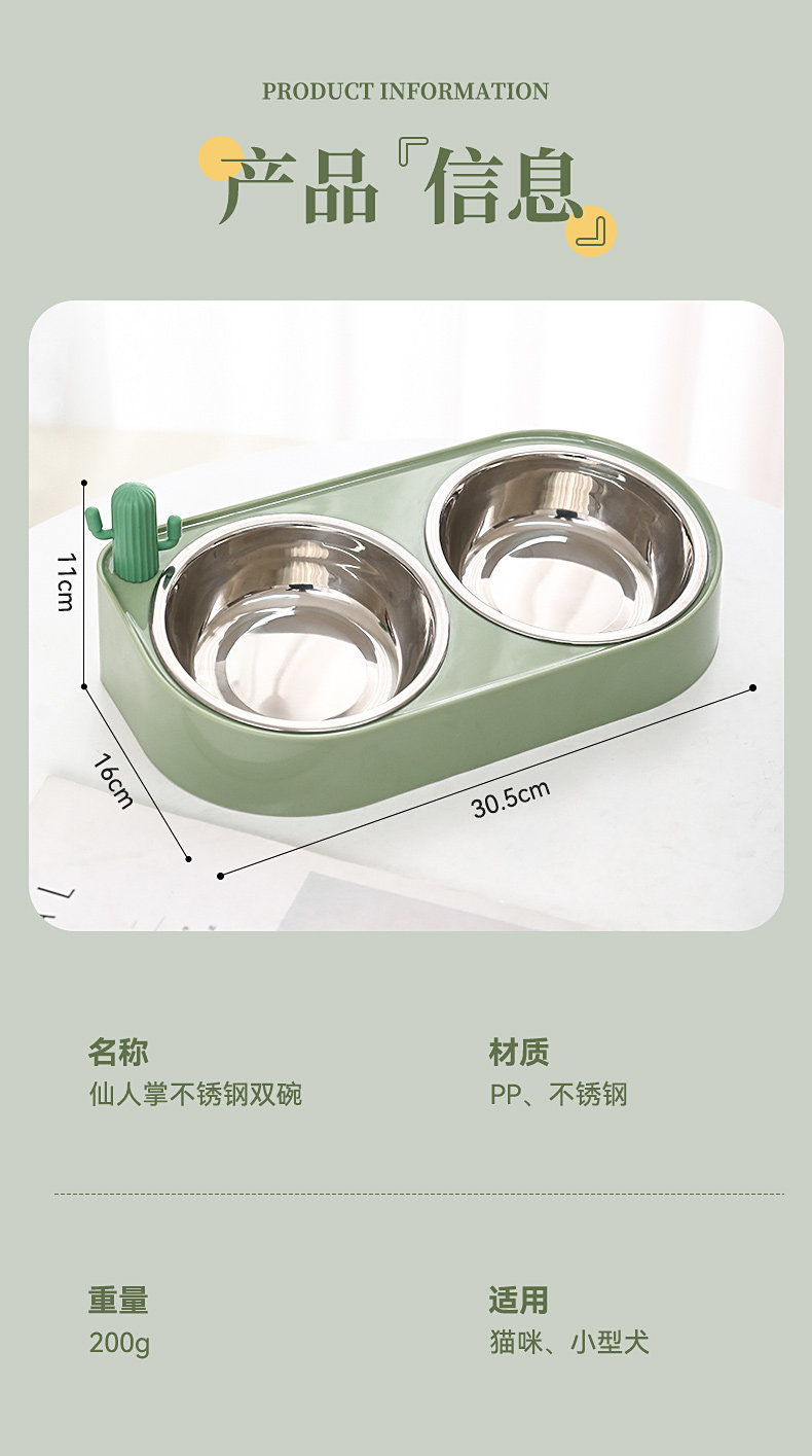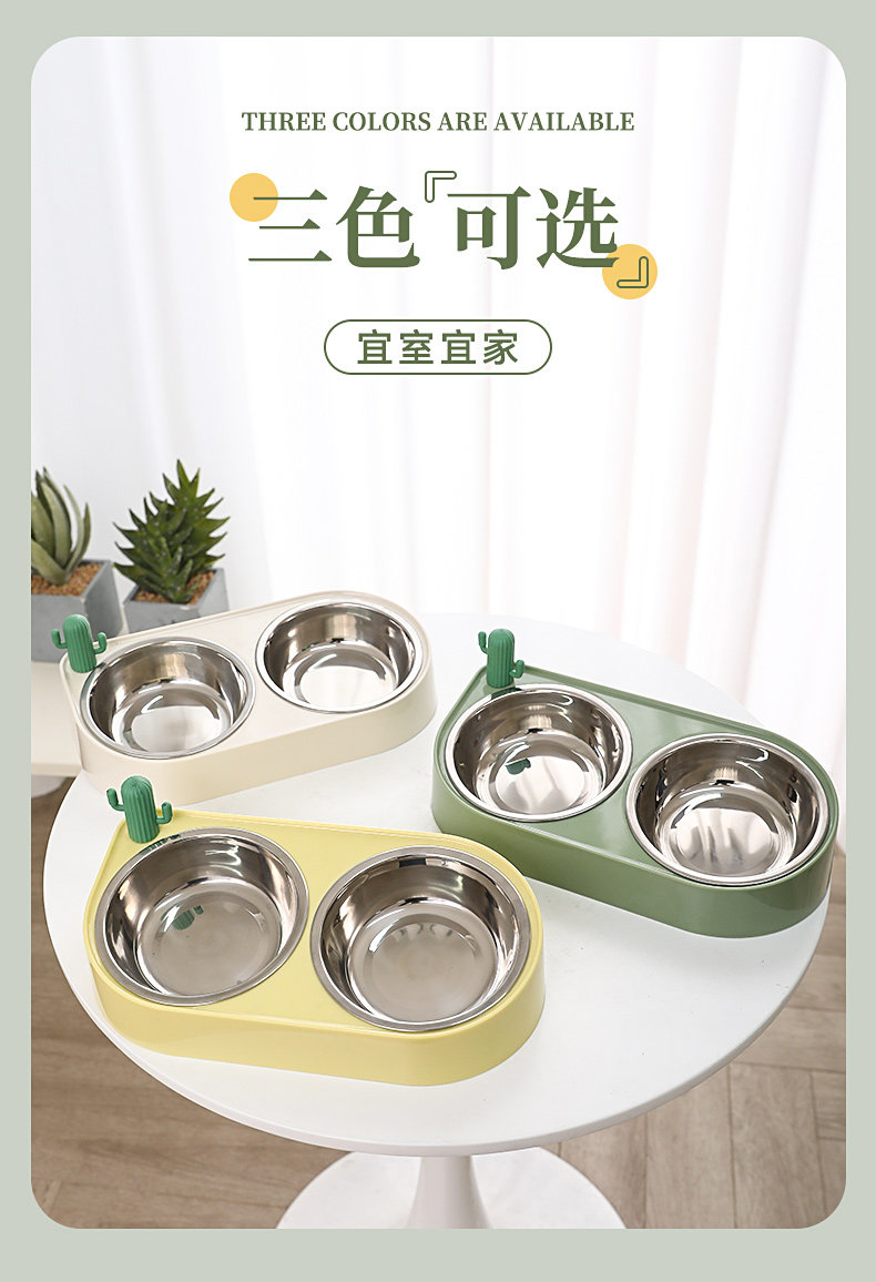 【品名】:HOOPET 仙人掌双碗(不锈钢款/陶瓷款)-(黄色/绿色/米色)