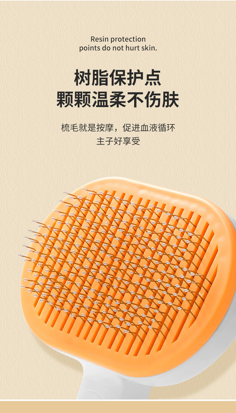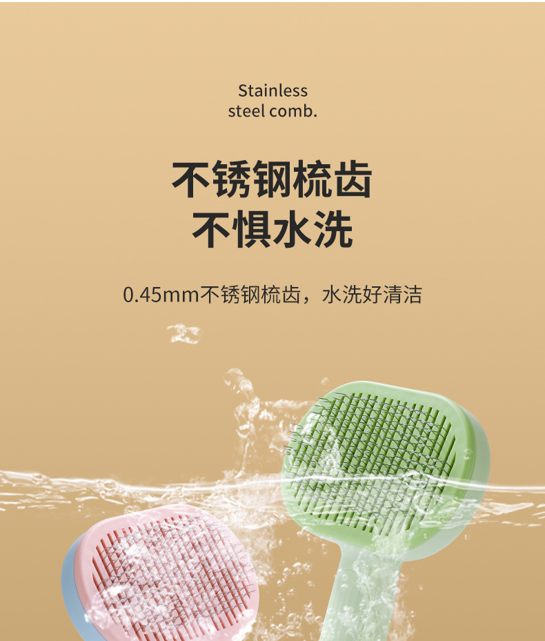 Productos para mascotas Peine para limpiar y eliminar el cabello flotante Peine de aguja de acero inoxidable Peine Masaje con un botón Peine de eliminación de cabello Peine de gato