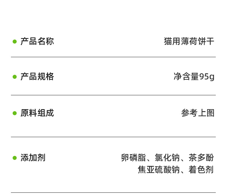 | Especificaciones | Galletas de menta con gato |