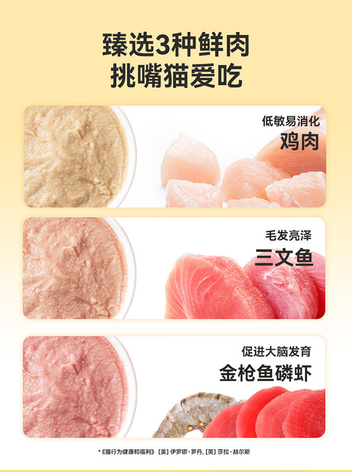 | Sabor | Pollo (90% de carne incluida) 100 barriles,Salmón (90% de carne) 100 barriles,Atún fósforo (90% de carne) 100 barriles,Mezclado (90% de carne) 100 barriles,Sabor a atún y camarón (90% de carne) 5 piezas a granel,Sabor a salmón (90% de carne) 5 piezas a granel,Pollo (90% de carne) 5 piezas a granel,El contenido de carne de pollo es del 65% = 15 gramos * 30 piezas,Sabor a salmón 65% de carne = 15 gramos * 30 piezas,Sabor a atún y camarón, contenido de carne 65% = 15 gramos * 30 piezas,Sabor a pollo, contenido de carne 90g * 30 piezas,Sabor a salmón con carne 90g * 30 piezas,Sabor a atún y camarón, contenido de carne 90% = 15 gramos * 30 piezas,Sabor a huevas de salmón = 15g * 5 (bolsa),Sabor de huevas de atún = 15g * 5 (bolsa),Sabor a huevas de pescado con columna de vieira = 15g * 5 (bolsa),Sabor a huevas de calamar = 15g * 5 (bolsa),Lactoferrina 15g * 10 tiras,Arándano antocianinas 15g * 10 tiras,Fibra de cebada de las tierras altas 15g * 10,Aceite de pescado de aguas profundas 15g * 10 tiras |
