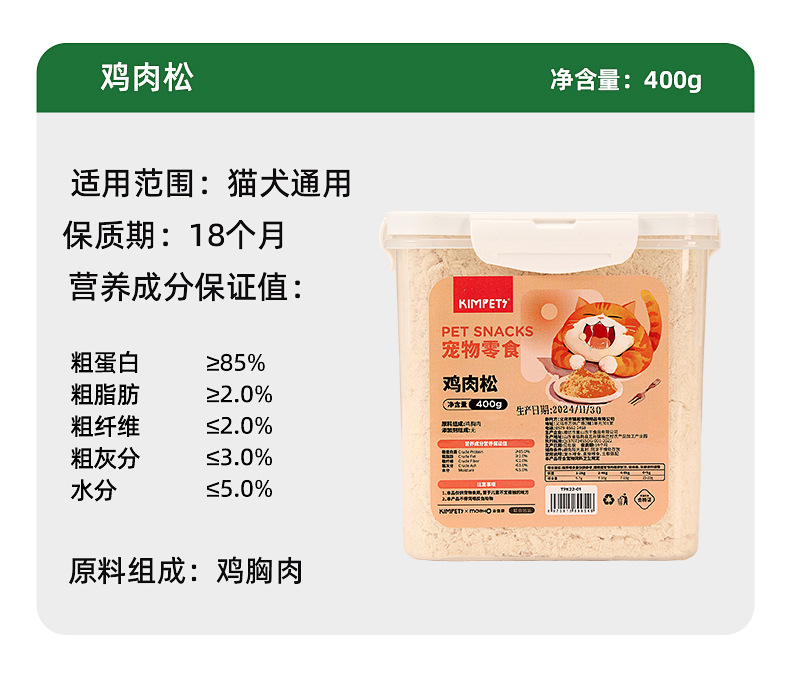 | Sabor | Pollo krill yema de huevo hilo de cerdo 500g,400g de hilo de pollo |