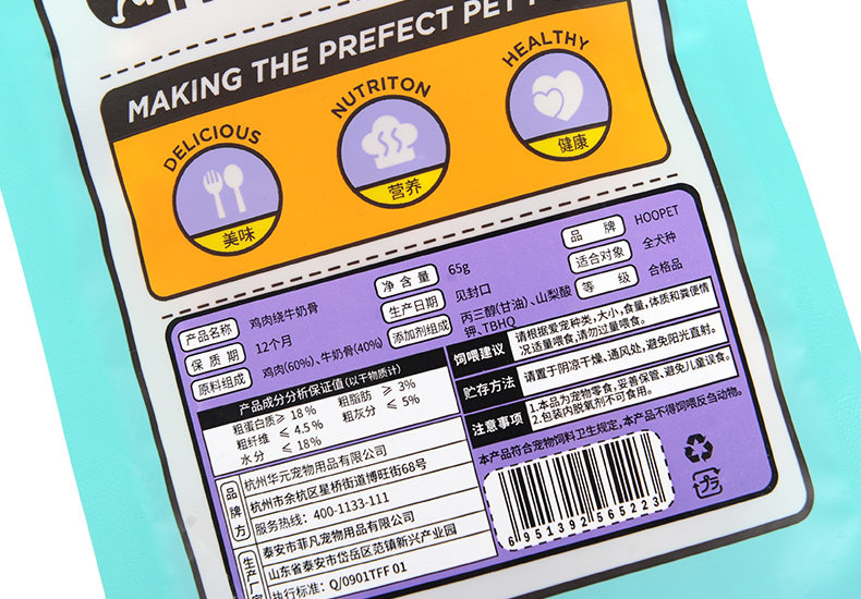 【品名】:hoopet宠物零食鸡肉绕奶骨 65g