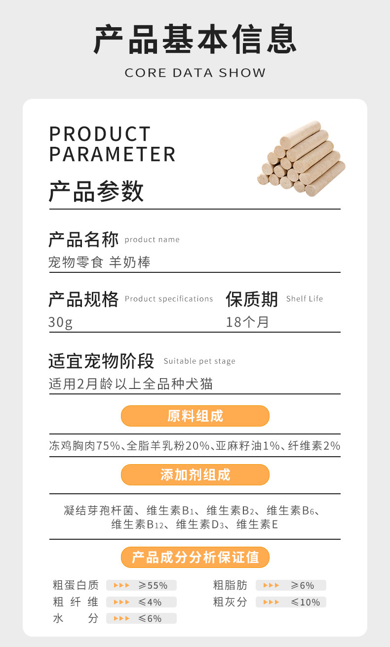 【品名】:Hoopet宠物零食(羊奶棒猫用)30g