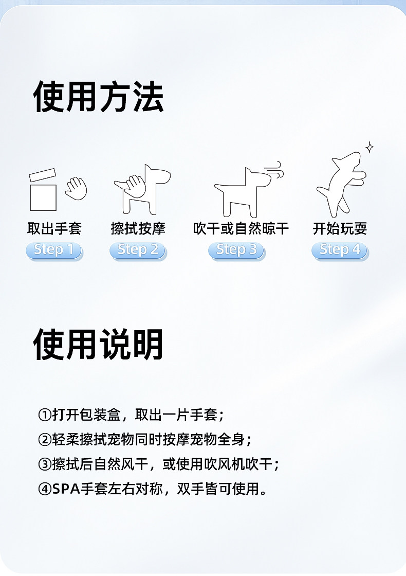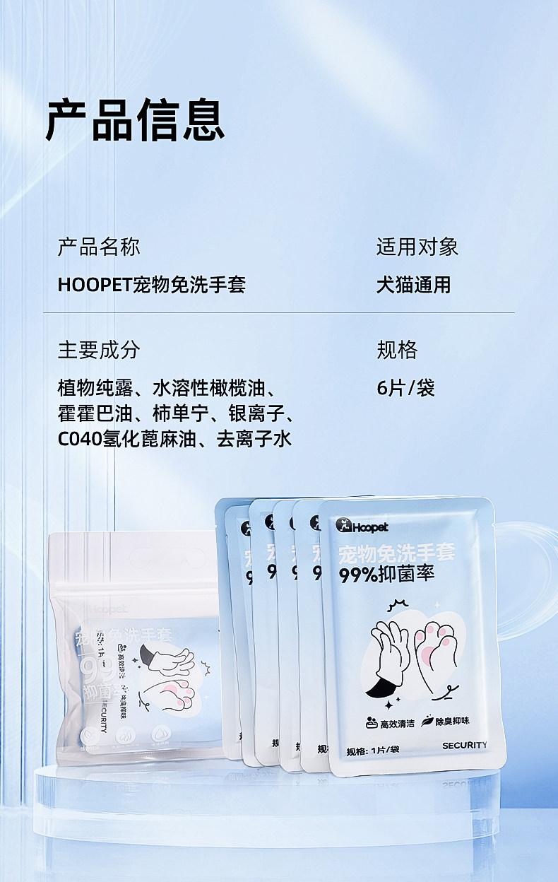 | Especificaciones | Guantes sin lavado para mascotas - 6 tabletas |
