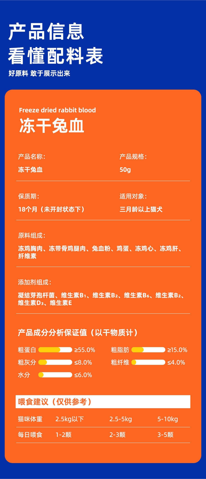 | Sabores | Liofilización de sangre de conejo de alta calidad [50g] |