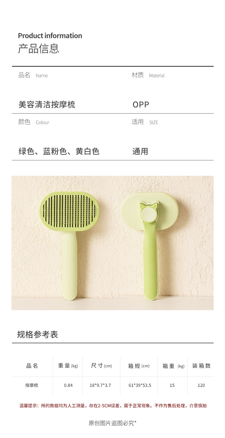 Peine de piel de gato transfronterizo genuino de fábrica, nudo abierto, artefacto de pelo flotante, peine de gato, peine de mascota autolimpiante, peine de presión