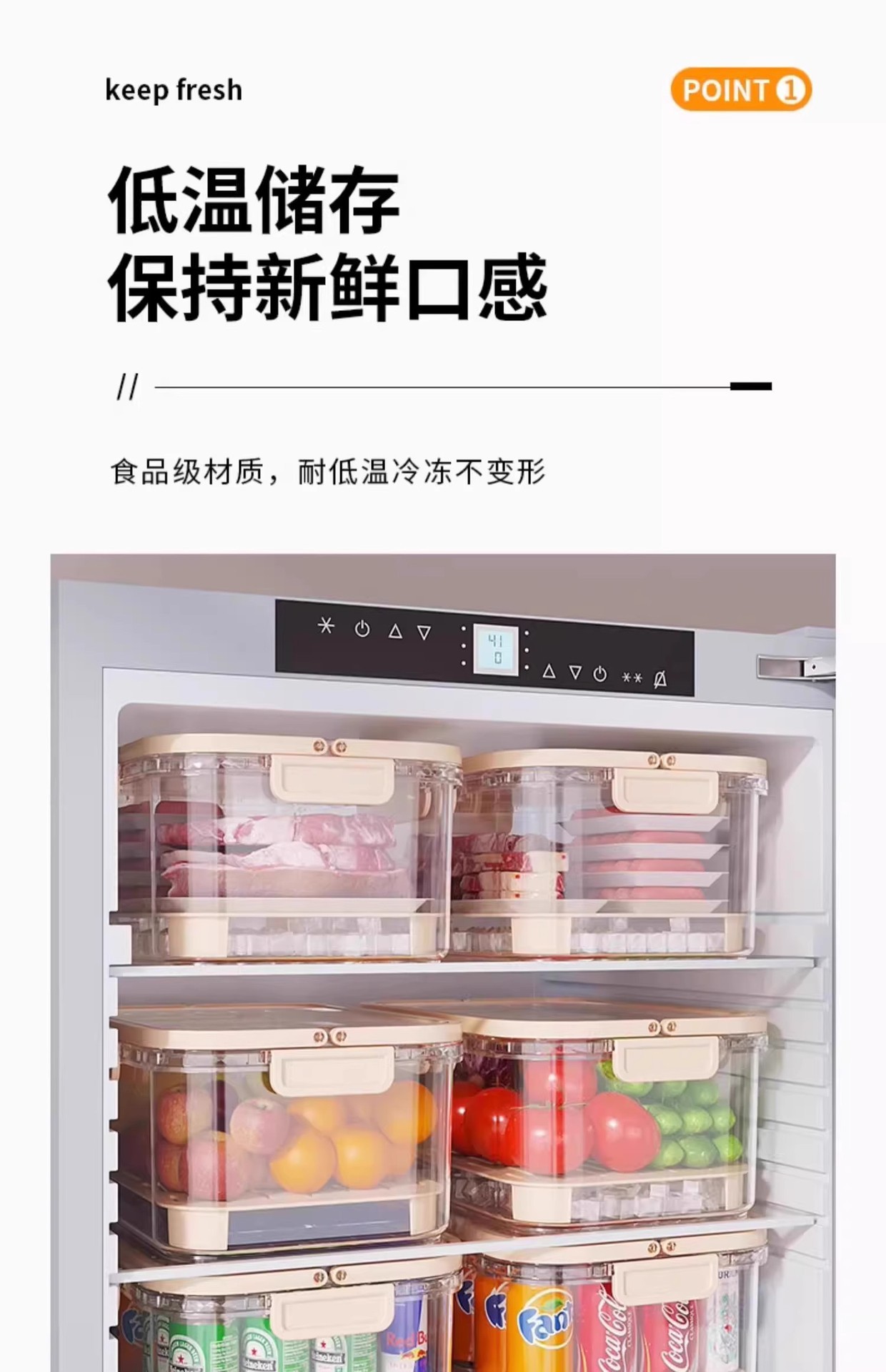 Caja de almacenamiento del refrigerador, comida sellada de categoría alimenticia, carne congelada, cebolla del cuatro-compartimiento, jengibre, ajo, cocinar y refrigeración