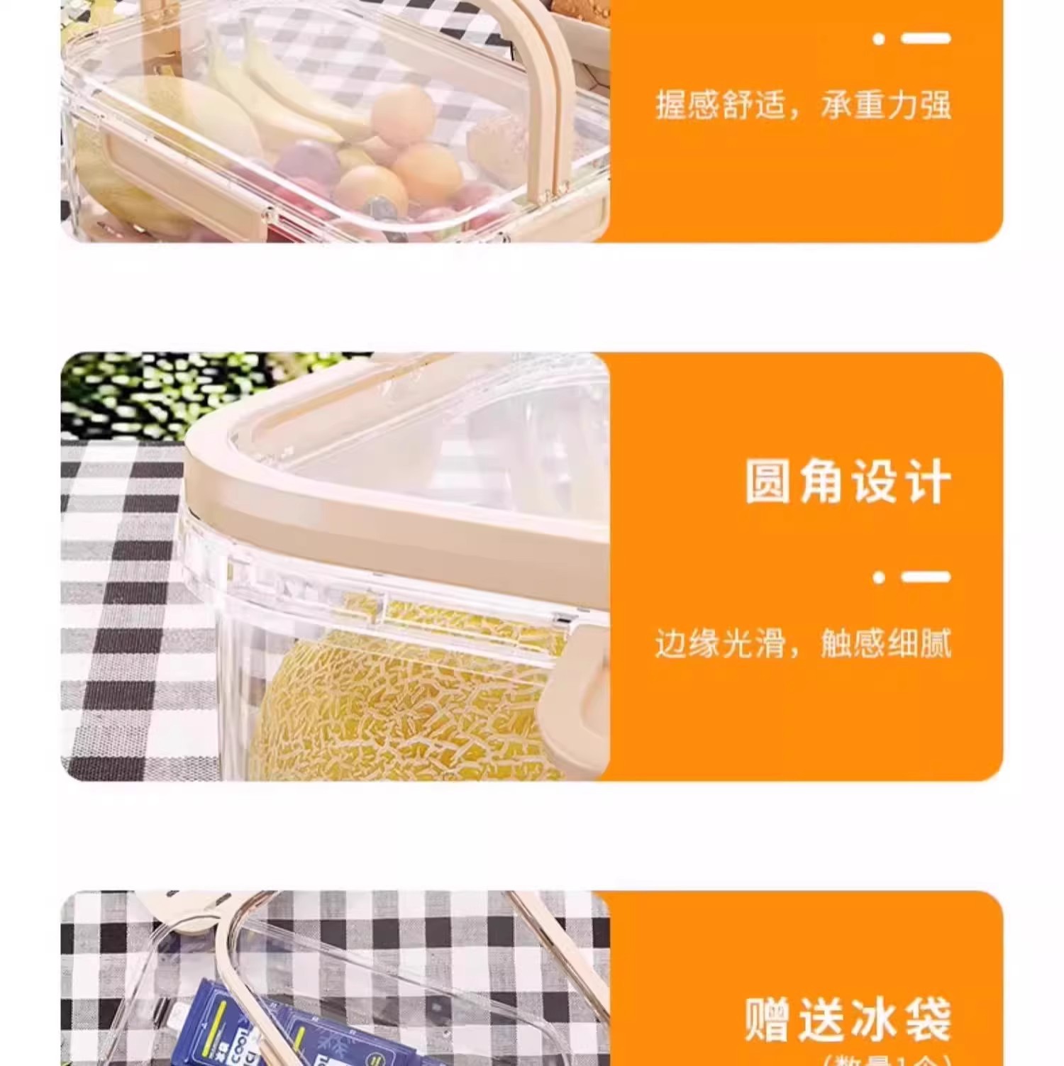 Caja bento portátil de gran capacidad, caja de conservación portátil, refrigerador, comida, picnic, caja sellada de frutas, campamento al aire libre, excursión de primavera