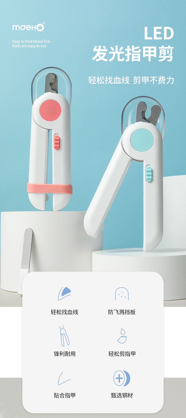 Gato especial tijeras de uñas agujeros redondos tijeras ciegas tijeras anti-tijeras líneas de sangre mascotas cortador de uñas de acero inoxidable al por mayor transfronterizo
