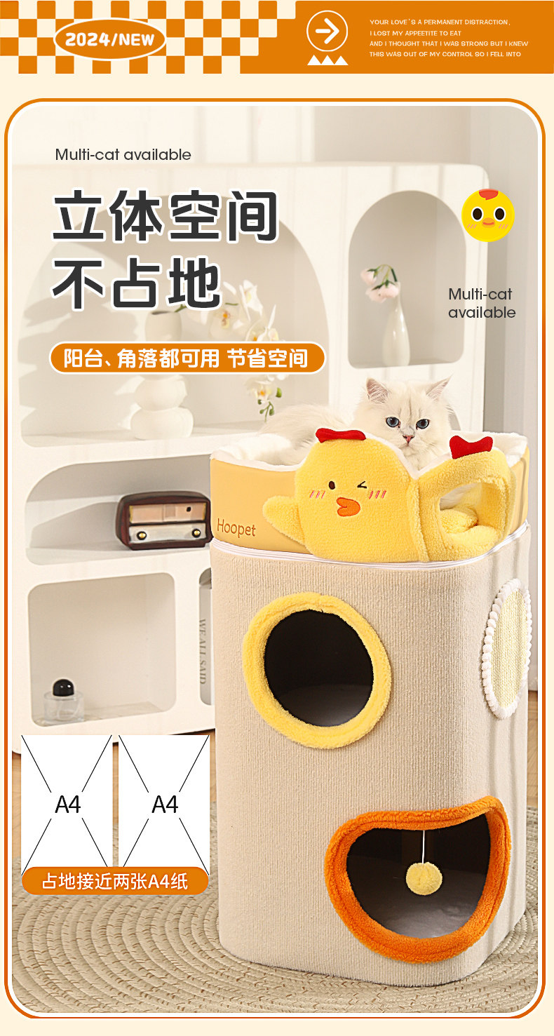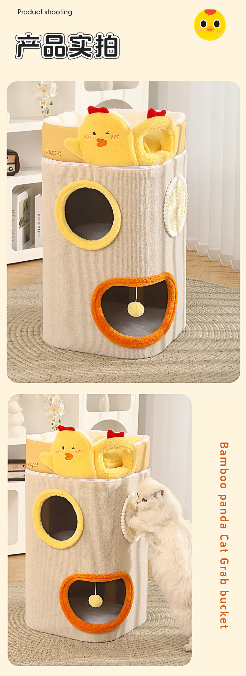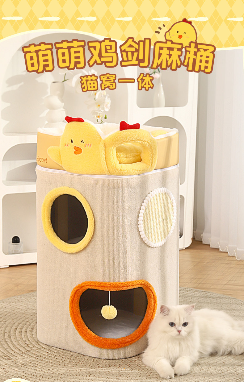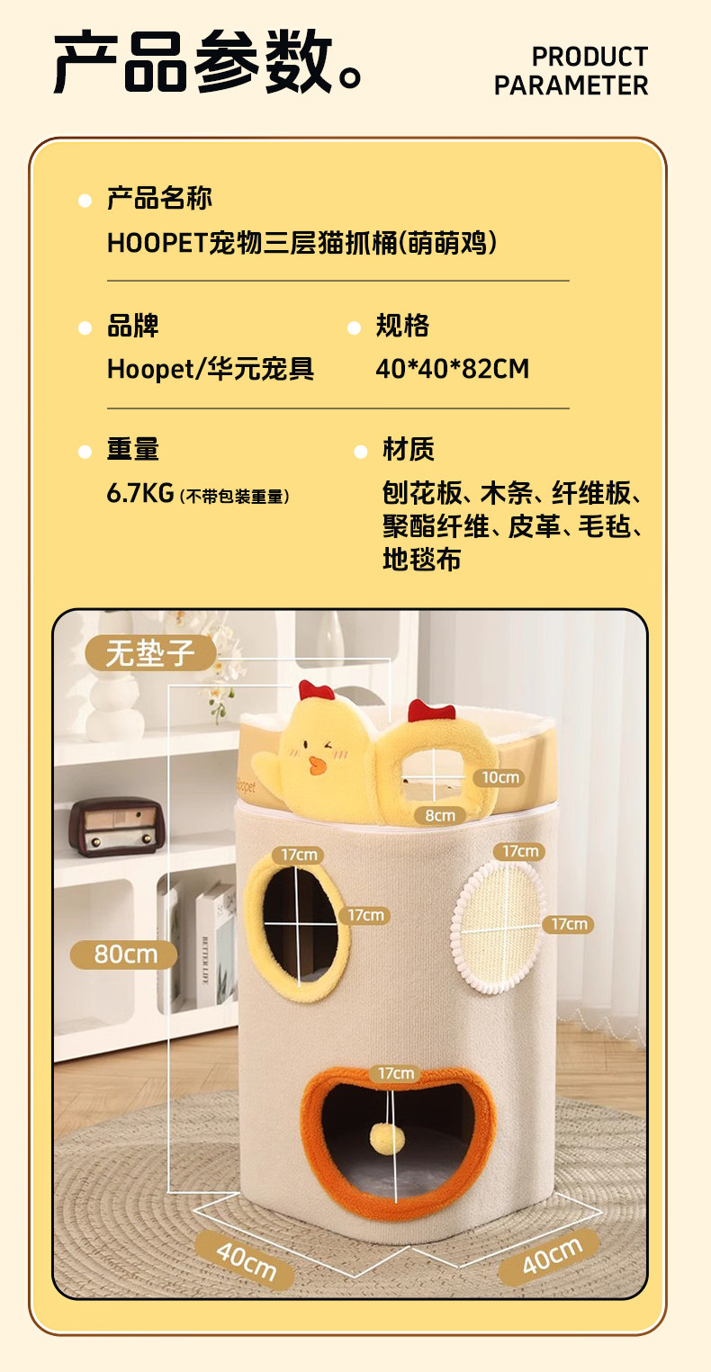 【品名】:HOOPET宠物三层猫抓桶(萌萌鸡)/配套绒垫(黄)