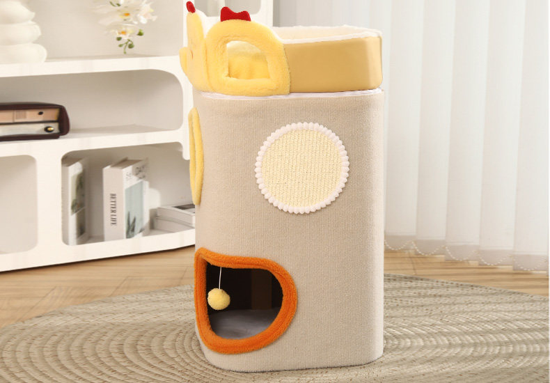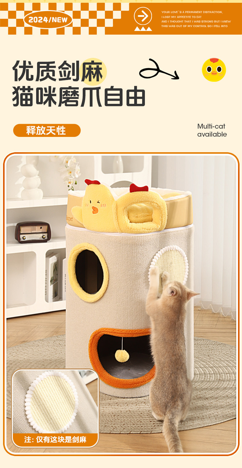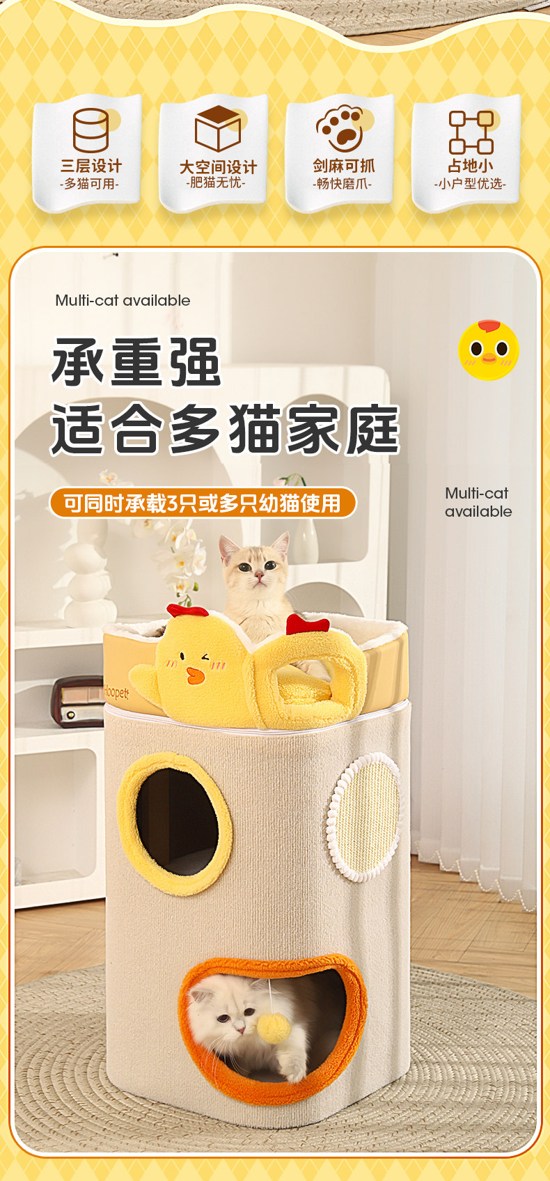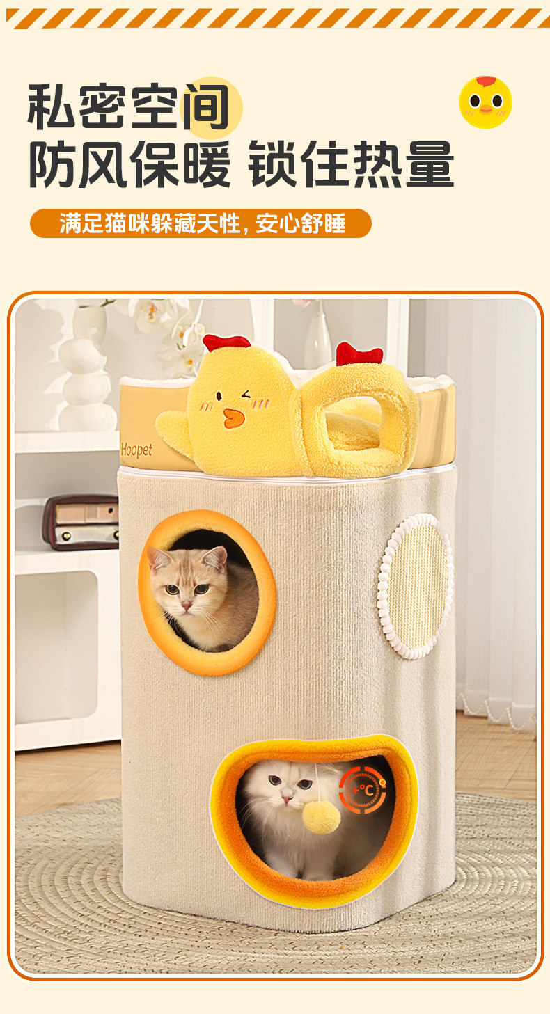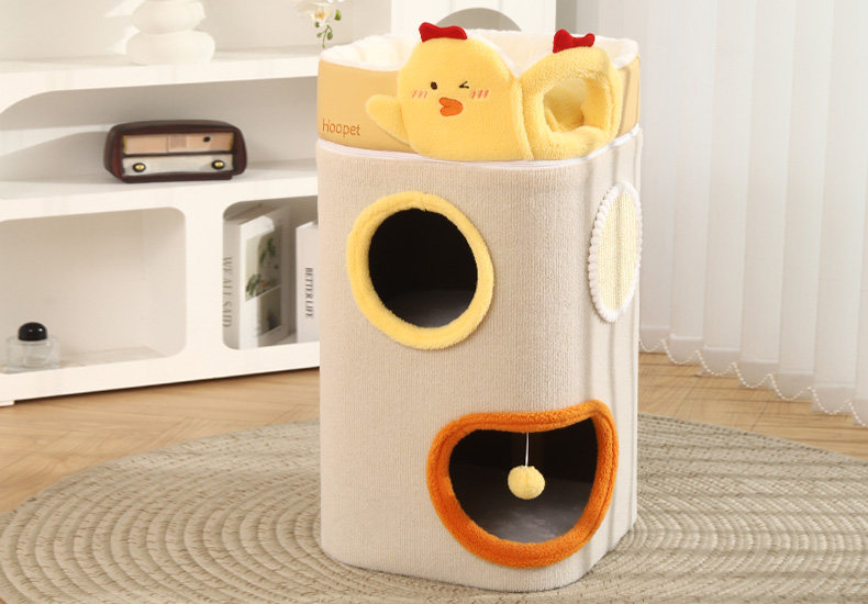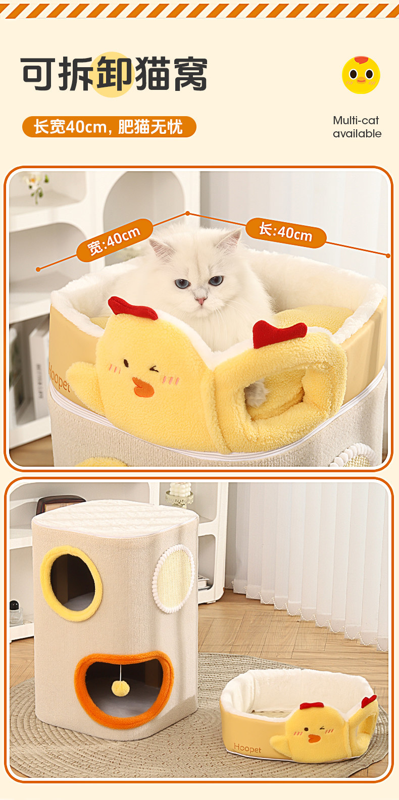 【品名】:HOOPET宠物三层猫抓桶(萌萌鸡)/配套绒垫(黄)