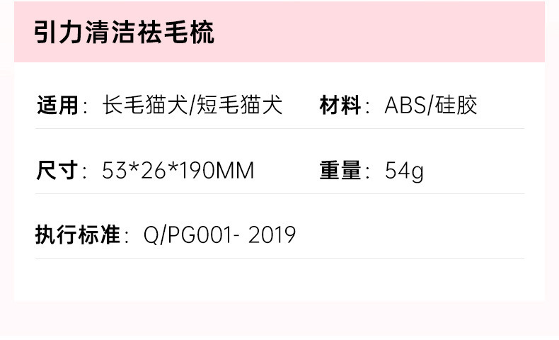 引力清洁祛毛梳(长毛梳)粉 单只包装尺寸:190*53*26mm