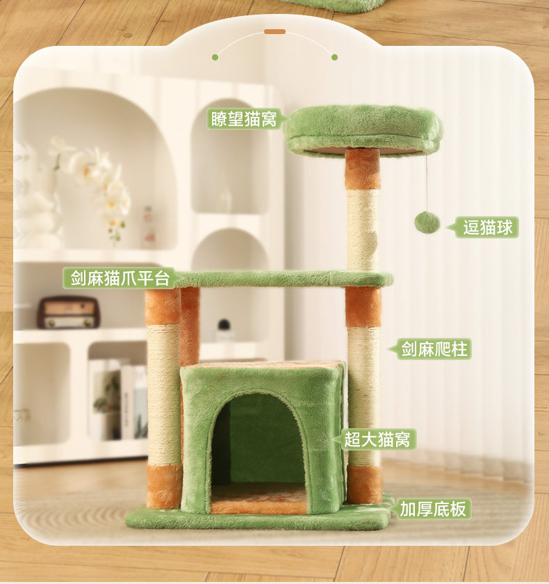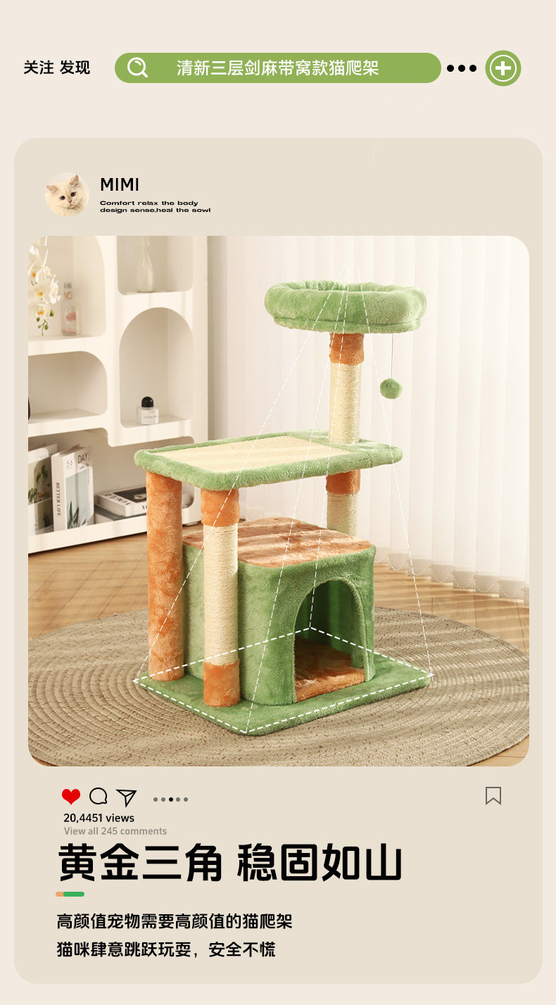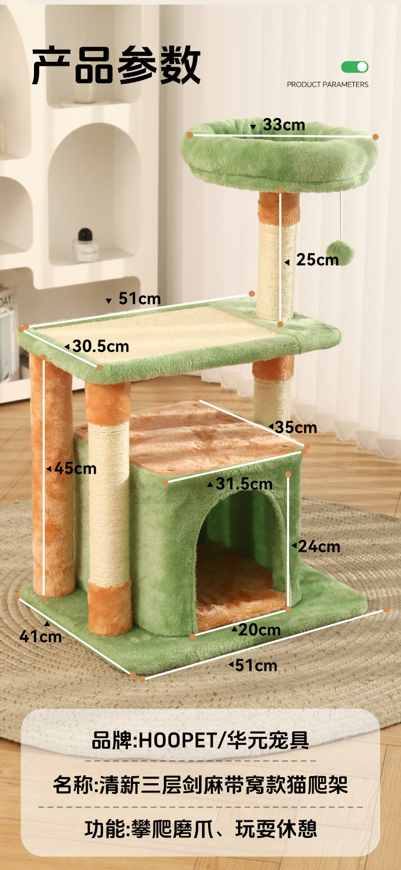 【品名】:HOOPET清新三层剑麻带窝款猫爬架/宠物小房子猫爬架