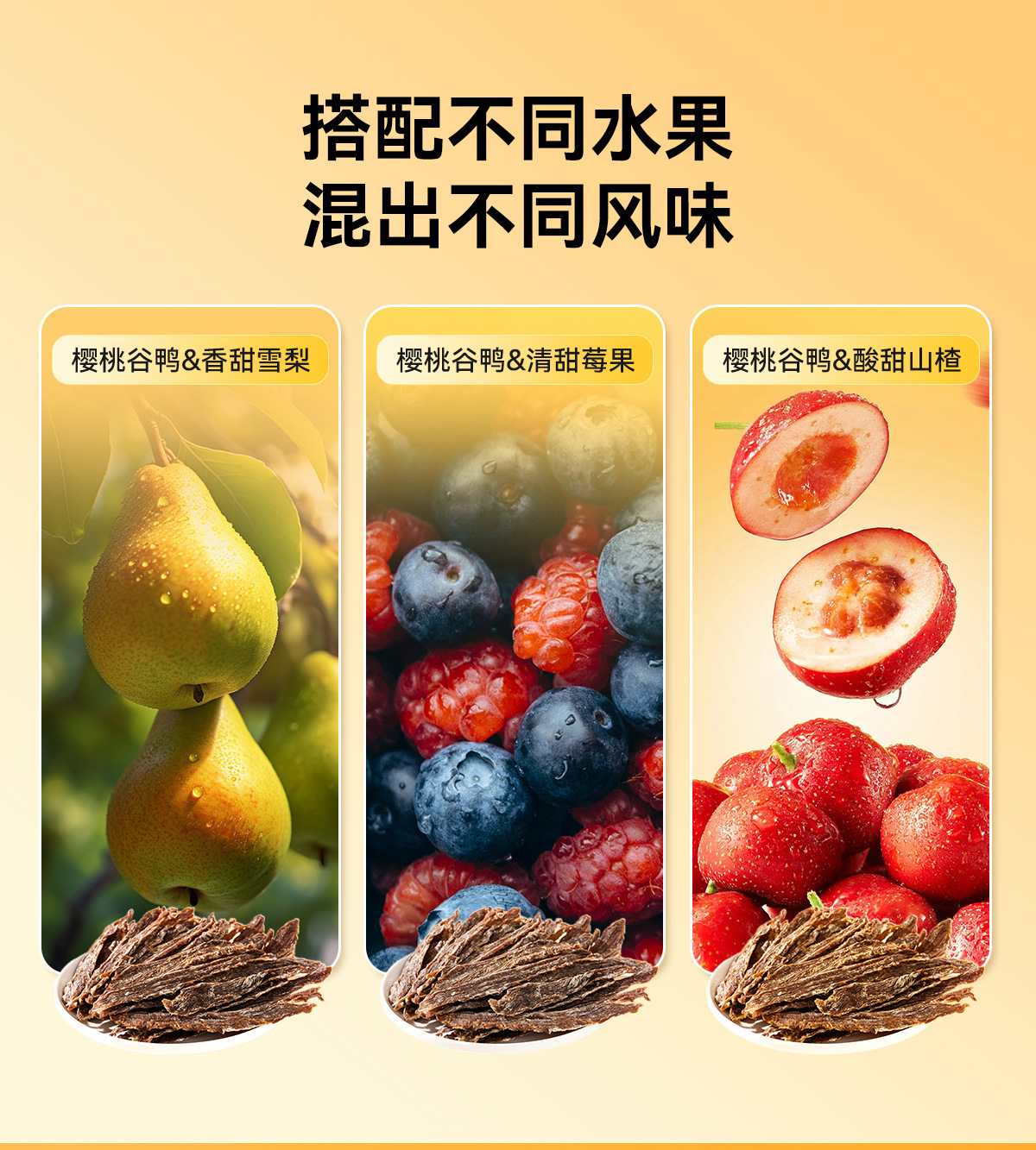 | Especificaciones | Carne de pato con arándanos,Pato helado de pera,Pato de espino |
