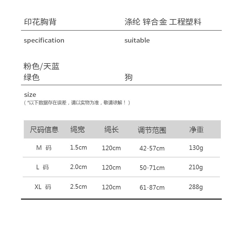 【规格】:套装:1.5*120cm 42-57cm/2.0*120cm 50-71cm/2.5*120cm 61-87cm;