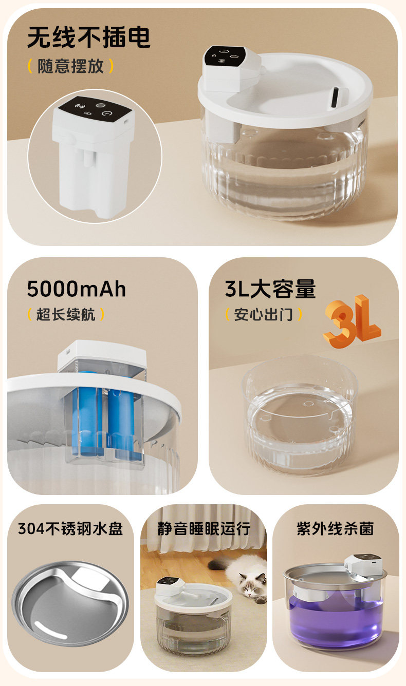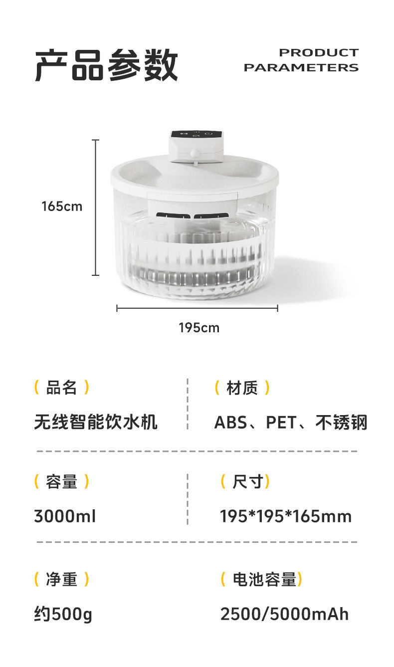 【规格】:20*20*16cm,3L,电池容量2500ma;20*20*16cm,3L,电池容量:5000ma;9.5*4.2*0.8cm
