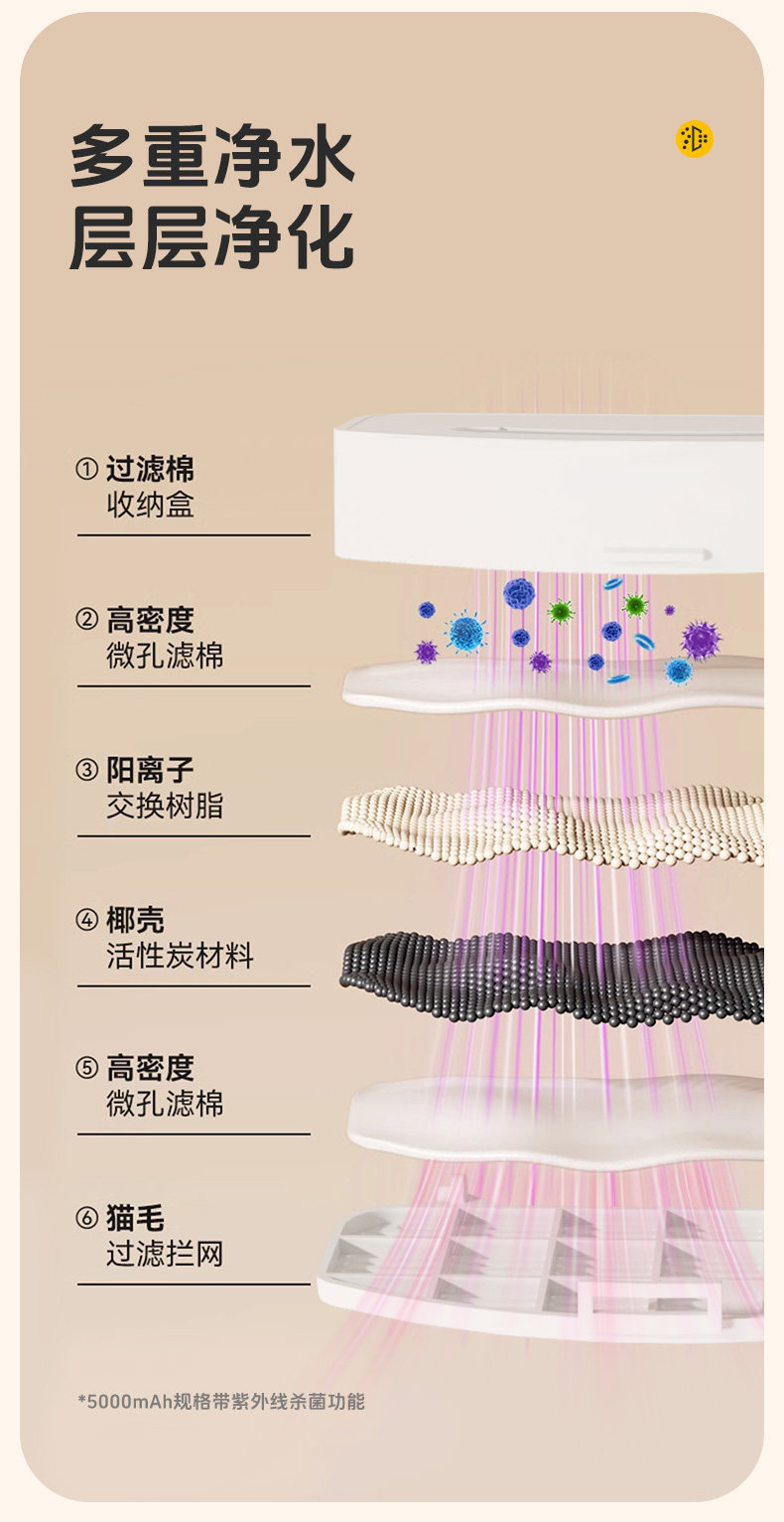 【材质】:普通款:ABS、PP;不锈钢款:不锈钢、ABS、PET;滤芯:树脂、活性炭