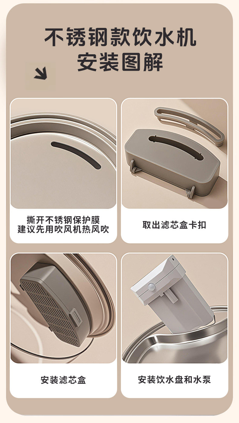 温馨提示:不锈钢款为保护不锈钢在运输过程中不被刮伤,故出厂时产品覆膜发出,请使用前吹风机吹一下将膜撕掉使用