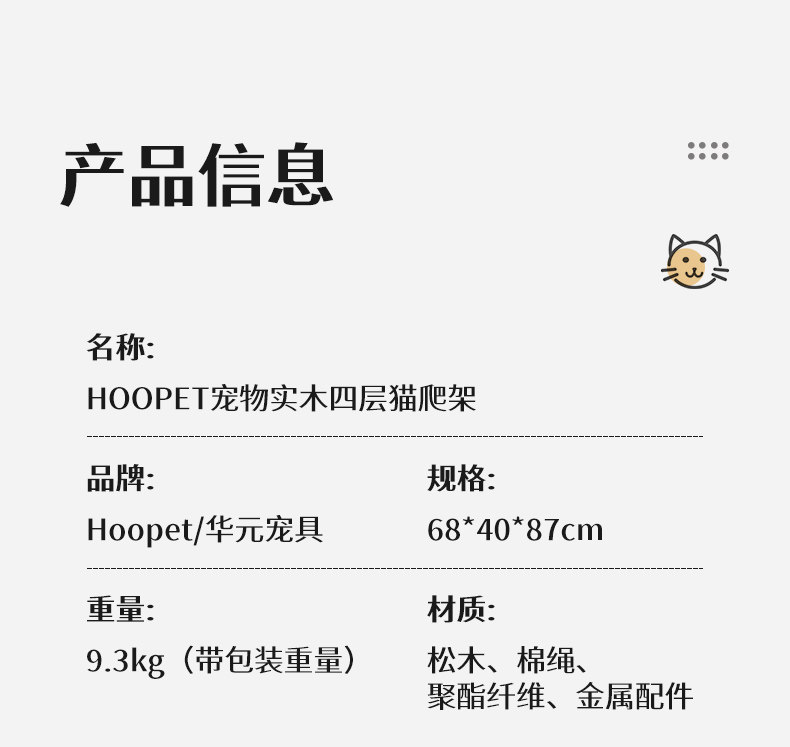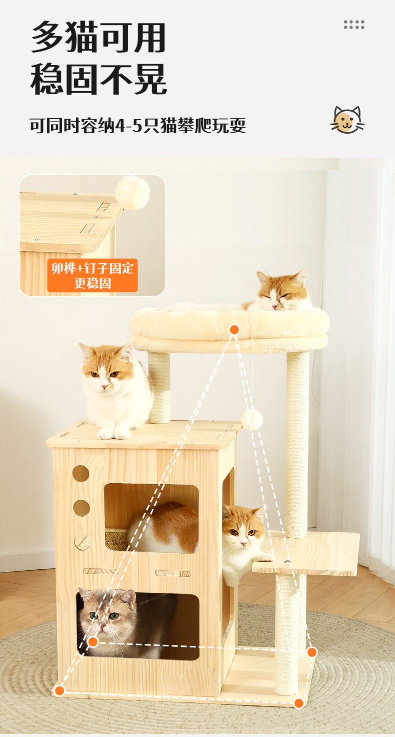 【品名】:HOOPET宠物实木四层猫爬架/实木大型猫爬架